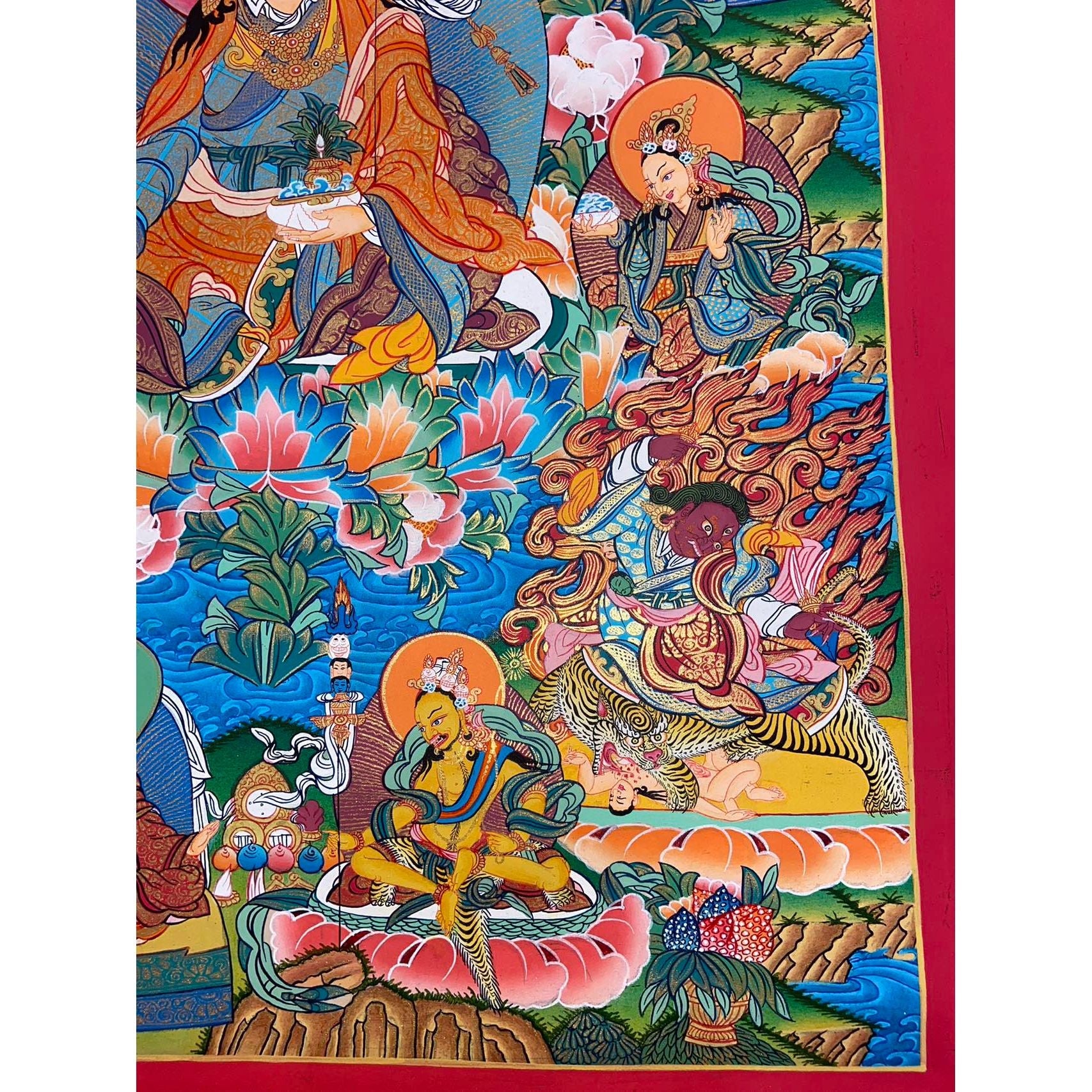Spiritual Connection: This Thangka allows you to connect with the powerful manifestations of Guru Padmasambhava, enhancing your meditation practice and deepening your understanding of Buddhist teachings.