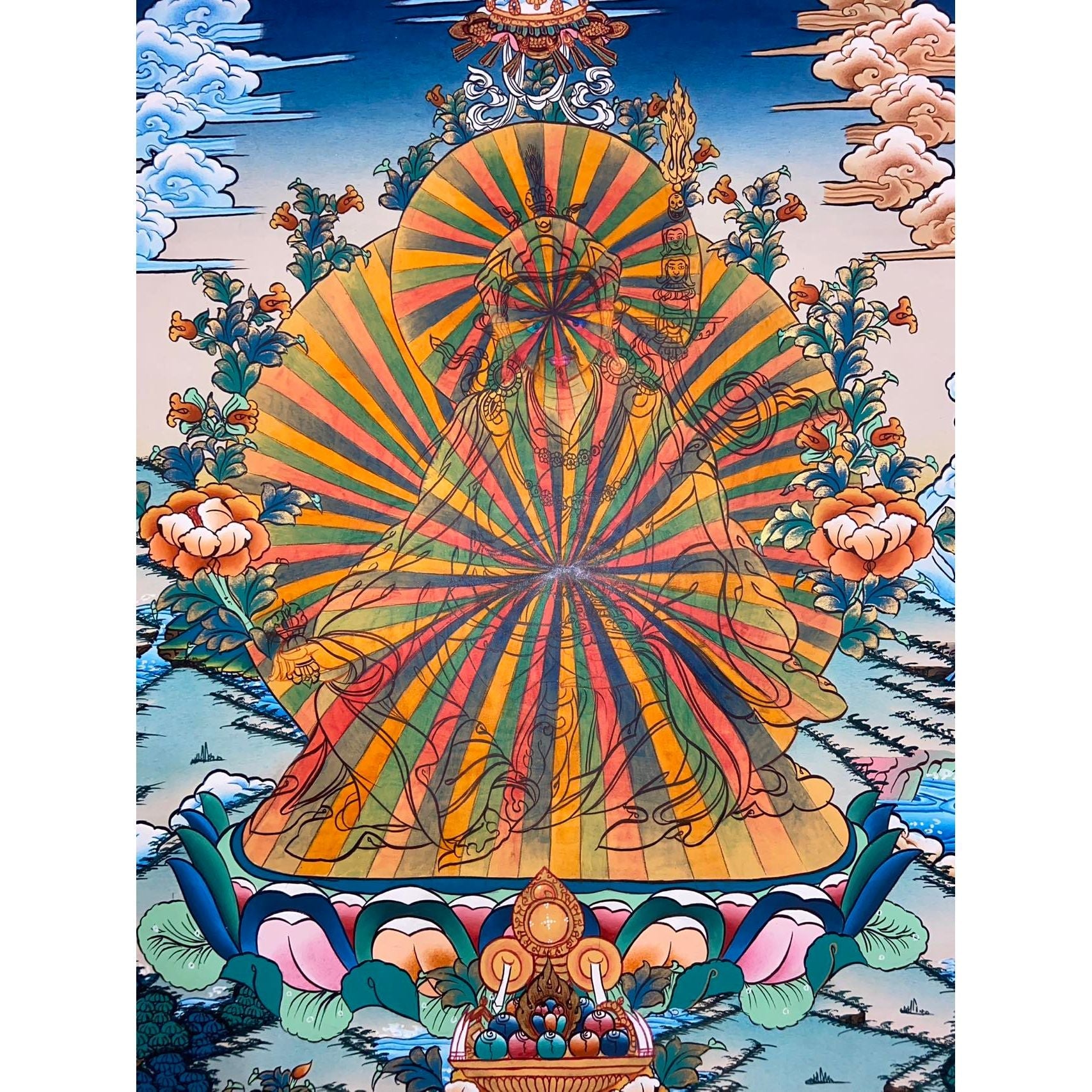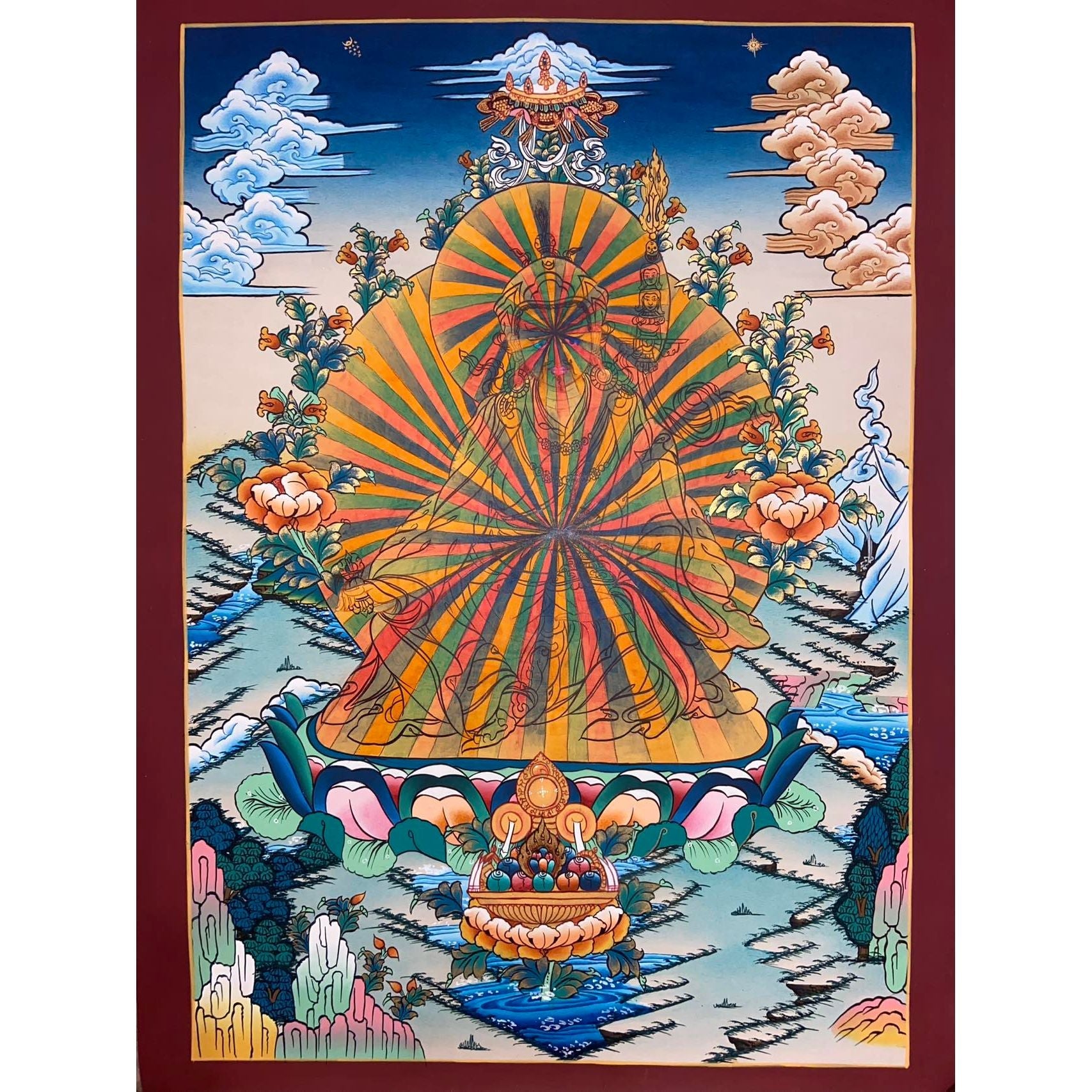 Invite the transformative energy of Guru Rinpoche into your life with this exquisite hand-painted masterpiece.