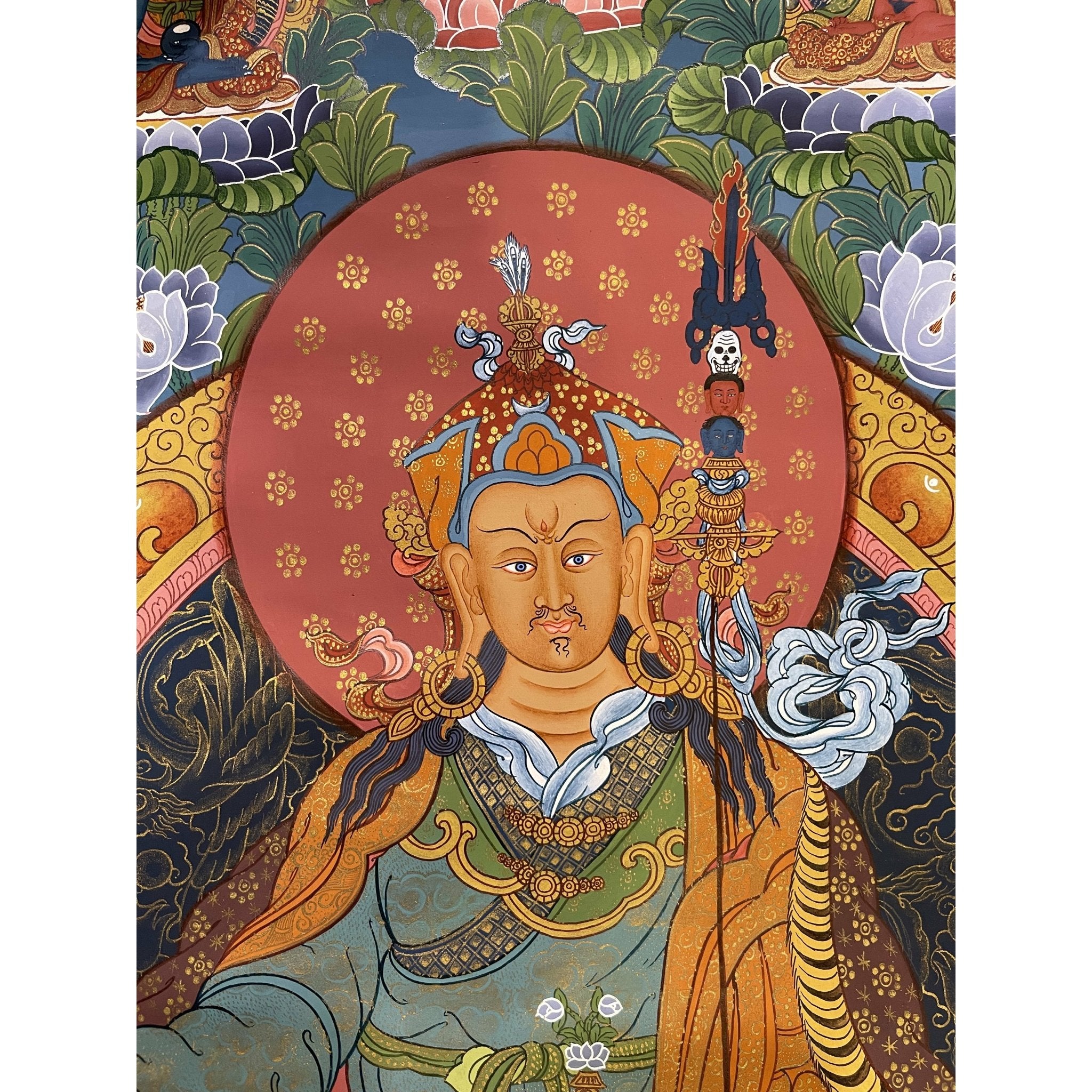 A Sacred Addition to Your Space This Guru Rinpoche Thangka radiates tranquility and spiritual depth. Its intricate details, vibrant colors, and symbolic imagery make it not just a decorative piece, but a powerful tool for meditation and personal growth.