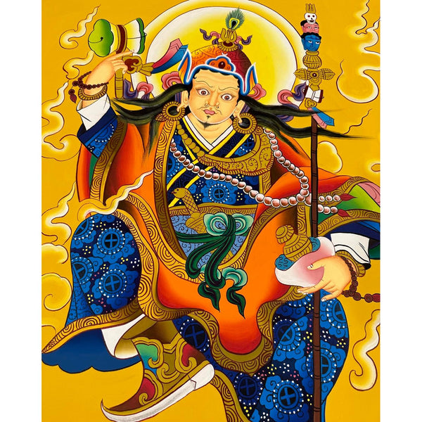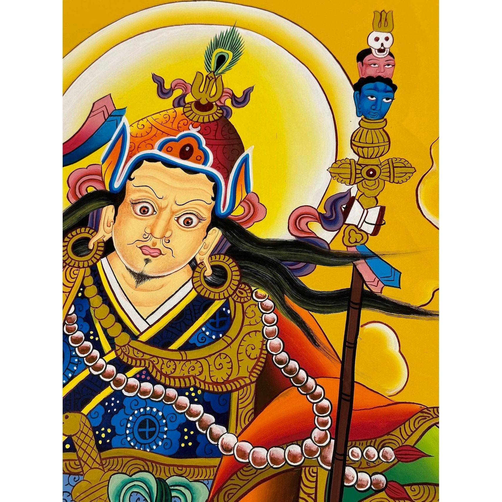 Invite the transformative energy of Guru Rinpoche into your life with this exquisite hand-painted masterpiece.