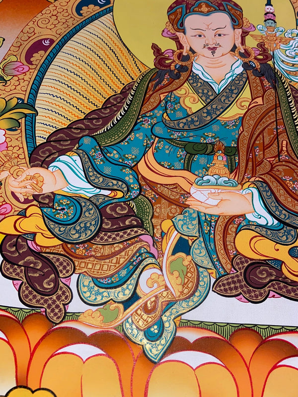 Invite the transformative energy of Guru Rinpoche into your life with this exquisite hand-painted masterpiece.