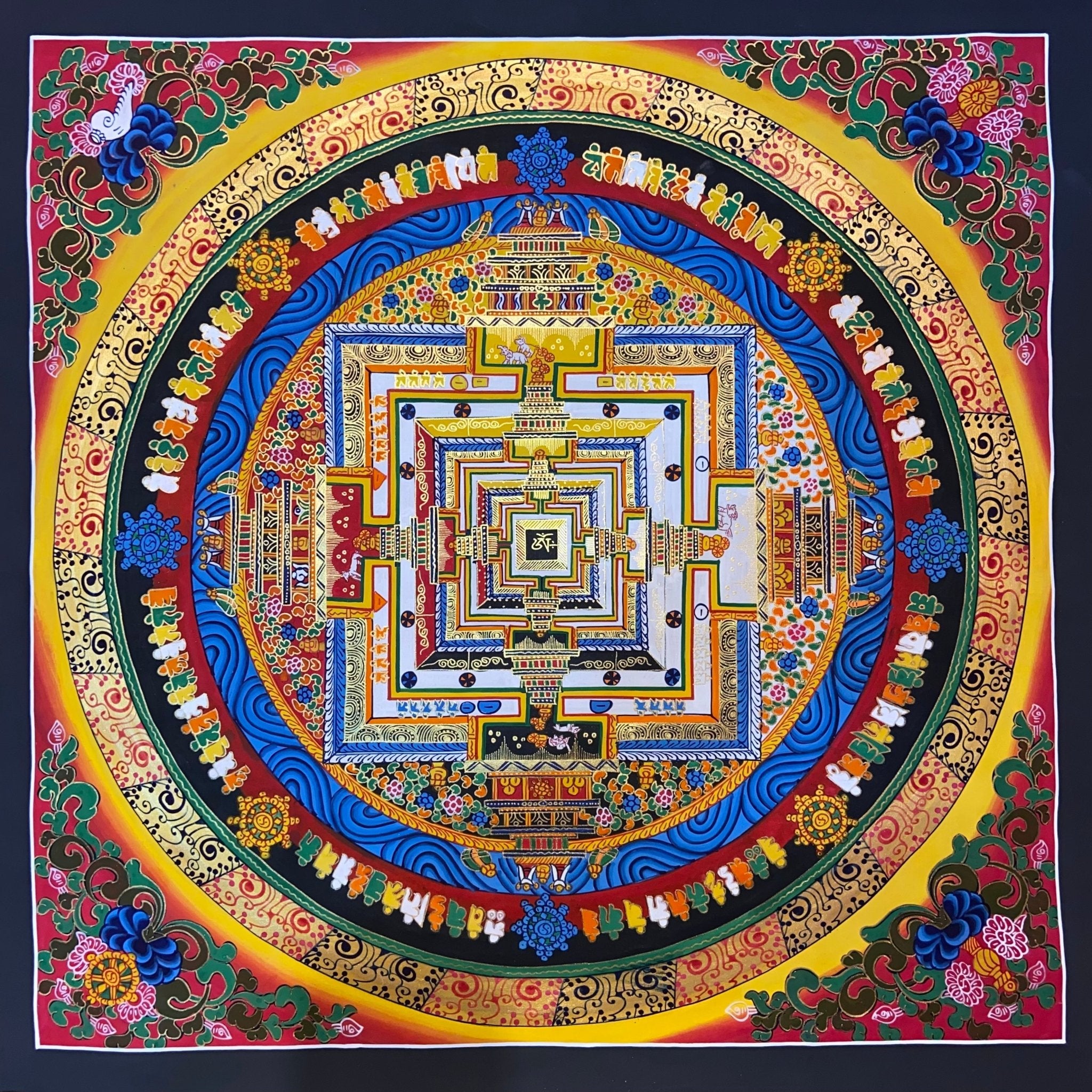 The Kalachakra Mandala Thangka is an exquisite and symbolic representation of the Kalachakra Tantra, one of the most advanced and complex teachings in Tibetan Buddhism. As His Holiness the Dalai Lama has emphasized, the Kalachakra initiations empower disciples to enter into the sacred Kalachakra mandala and identify with the deity Kalachakra. This hand-painted Thangka, created using Tibetan gold dust and natural pigments on organic cotton canvas, is a powerful tool for meditation and spiritual growth.
