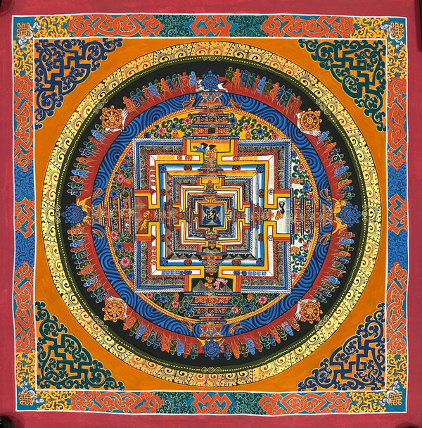 The Kalachakra Mandala Thangka is an exquisite and symbolic representation of the Kalachakra Tantra, one of the most advanced and complex teachings in Tibetan Buddhism. As His Holiness the Dalai Lama has emphasized, the Kalachakra initiations empower disciples to enter into the sacred Kalachakra mandala and identify with the deity Kalachakra. This hand-painted Thangka, created using Tibetan gold dust and natural pigments on organic cotton canvas, is a powerful tool for meditation and spiritual growth.