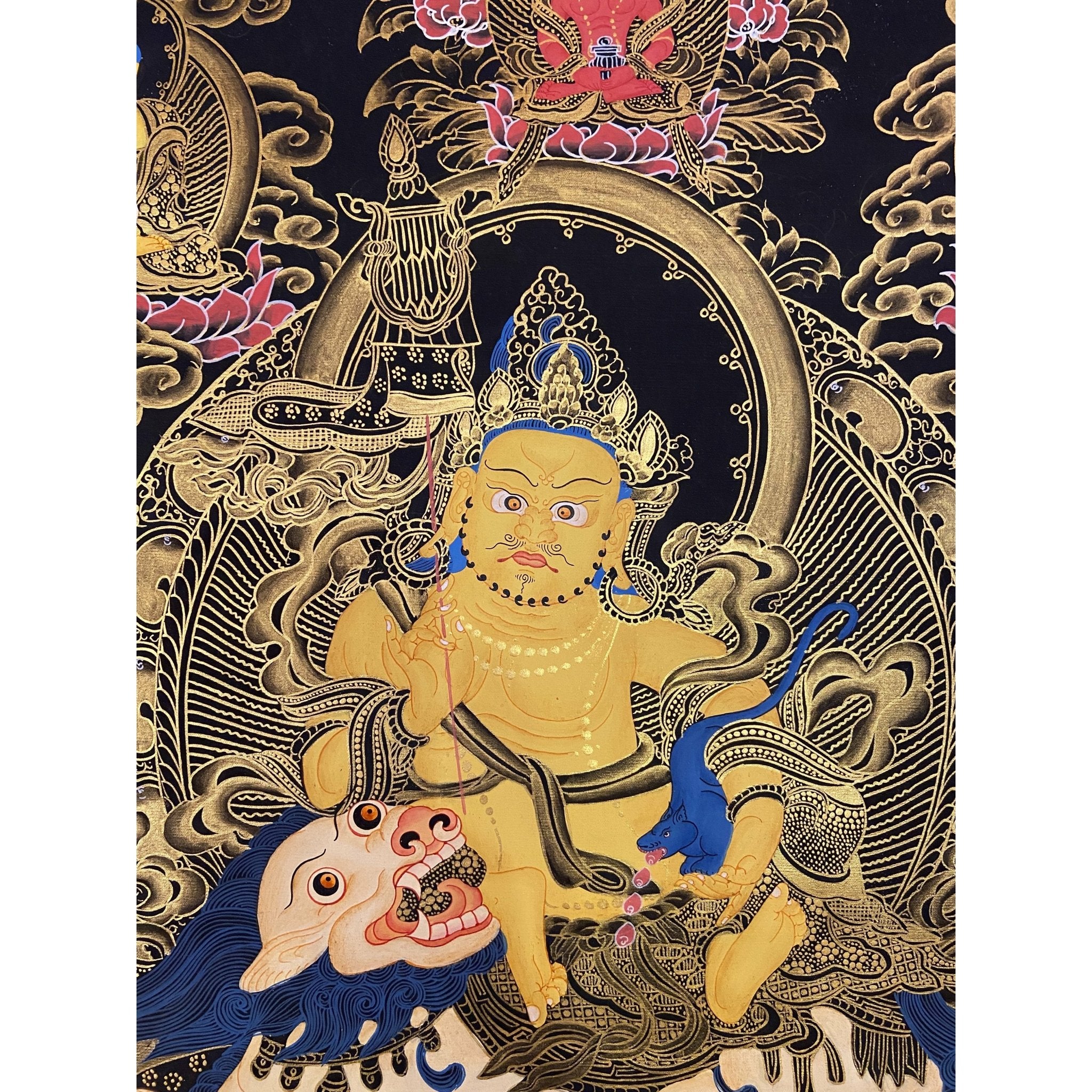 The Jambhala (Kubera) Thangka is not just a decorative masterpiece but also a powerful spiritual tool. Whether displayed in your home or office, it enhances the aesthetic and spiritual atmosphere, inviting blessings of prosperity and well-being.