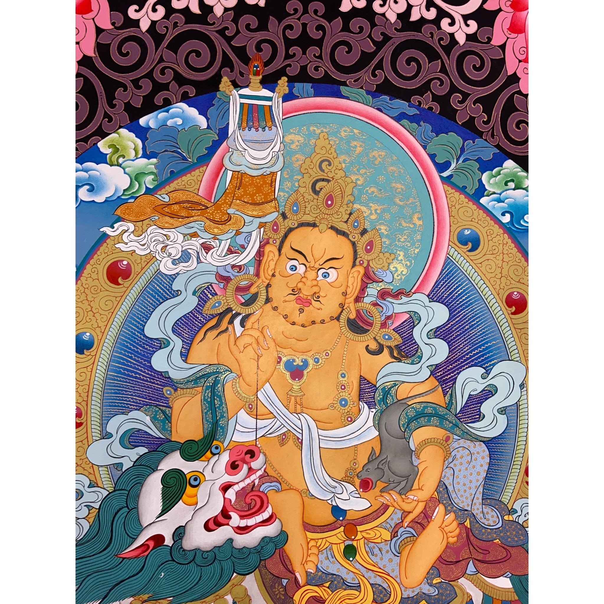 This Namtoshe Thangka is not only a stunning work of art, but it also serves as a powerful symbol of wealth, protection, and spiritual growth. It is a perfect addition to any space, inviting blessings of prosperity and wisdom into your life. May the presence of Namtoshe bring you both material abundance and the deeper wisdom that sustains it.