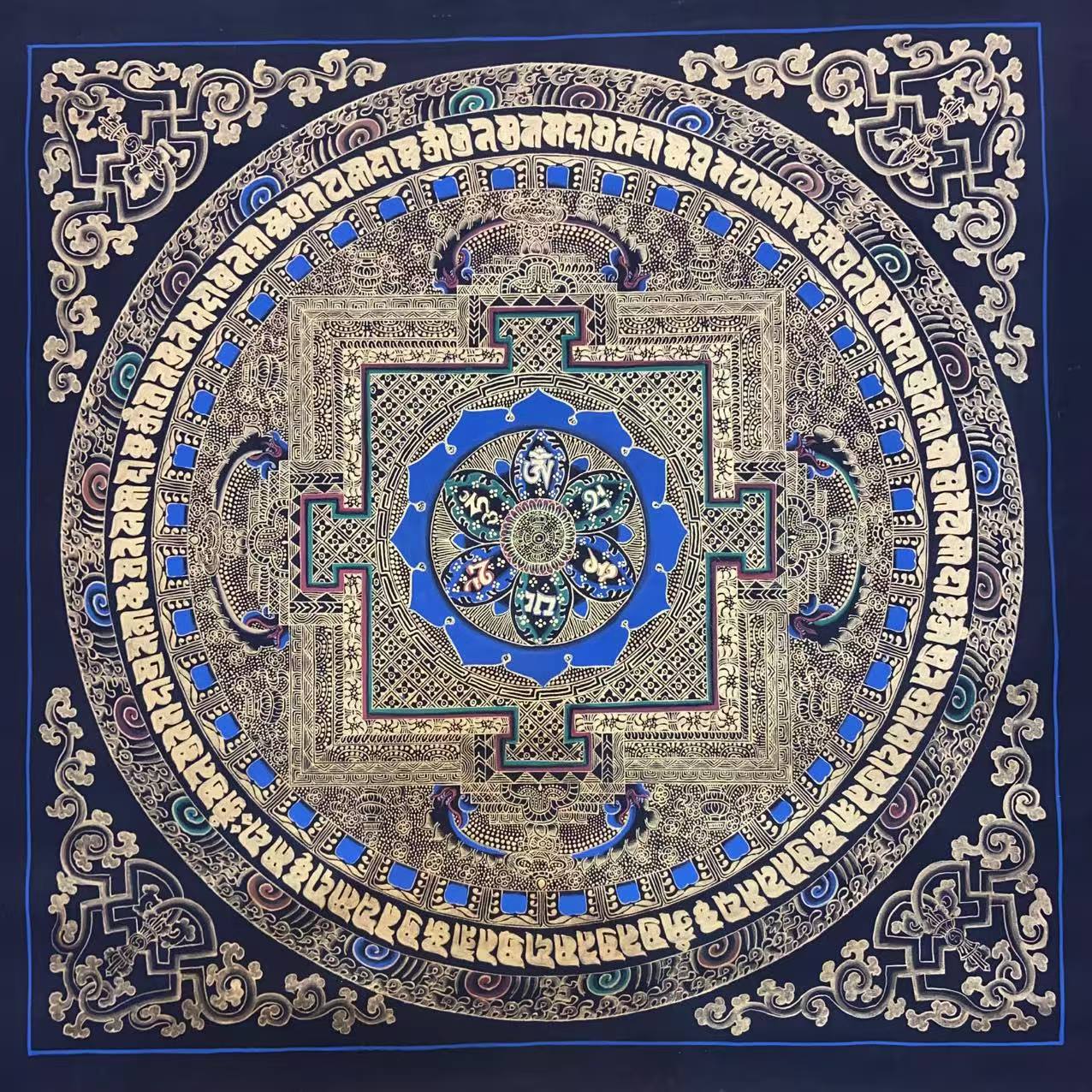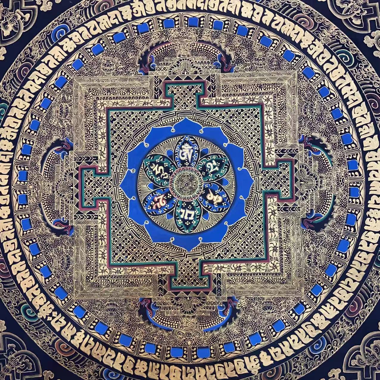 The Om Mantra Mandala Thangka is not just a decorative piece; it is a profound spiritual artifact, radiating peace, harmony, and enlightenment. Whether hung in your home, office, or meditation space, this masterpiece invites blessings, balance, and sacred energy into your life.