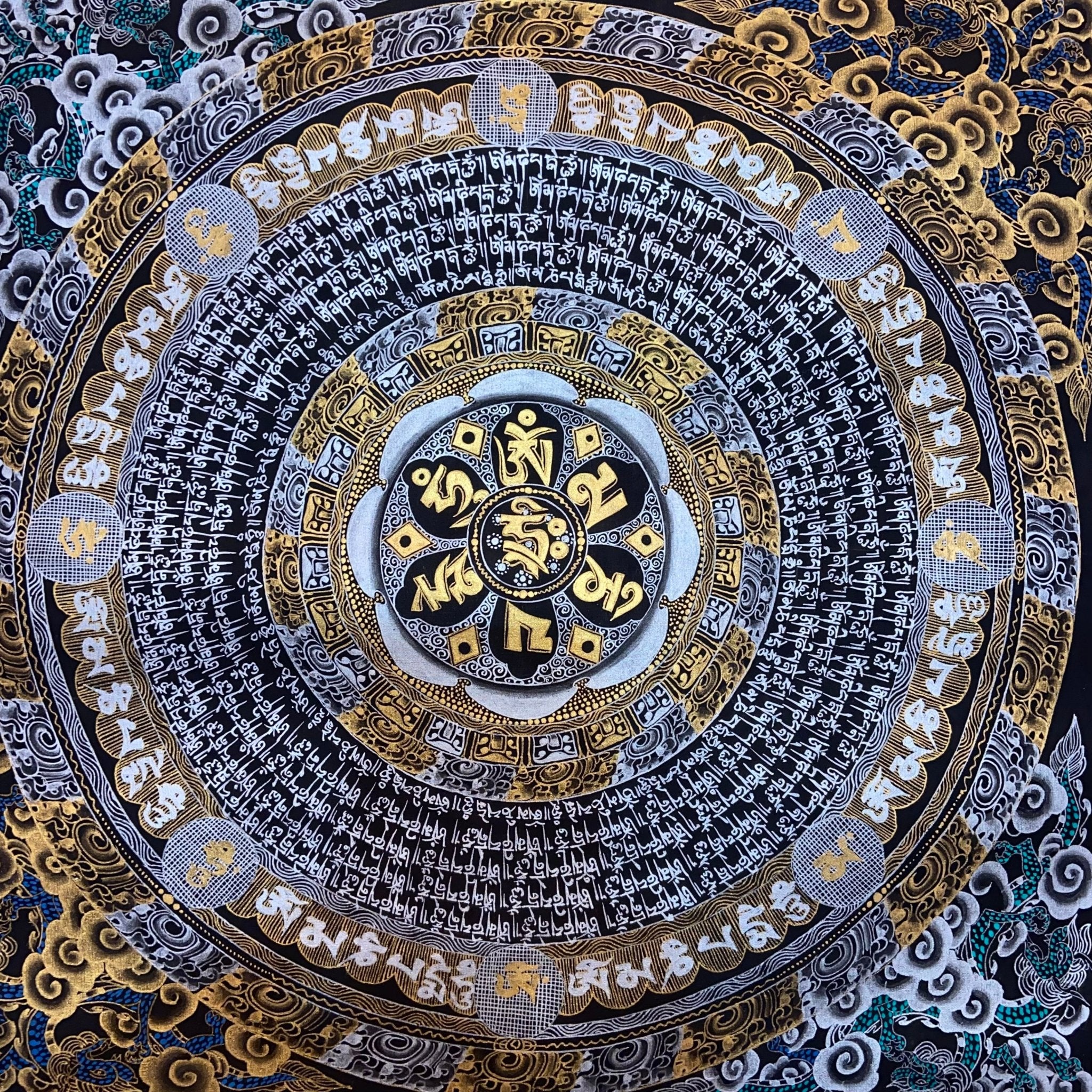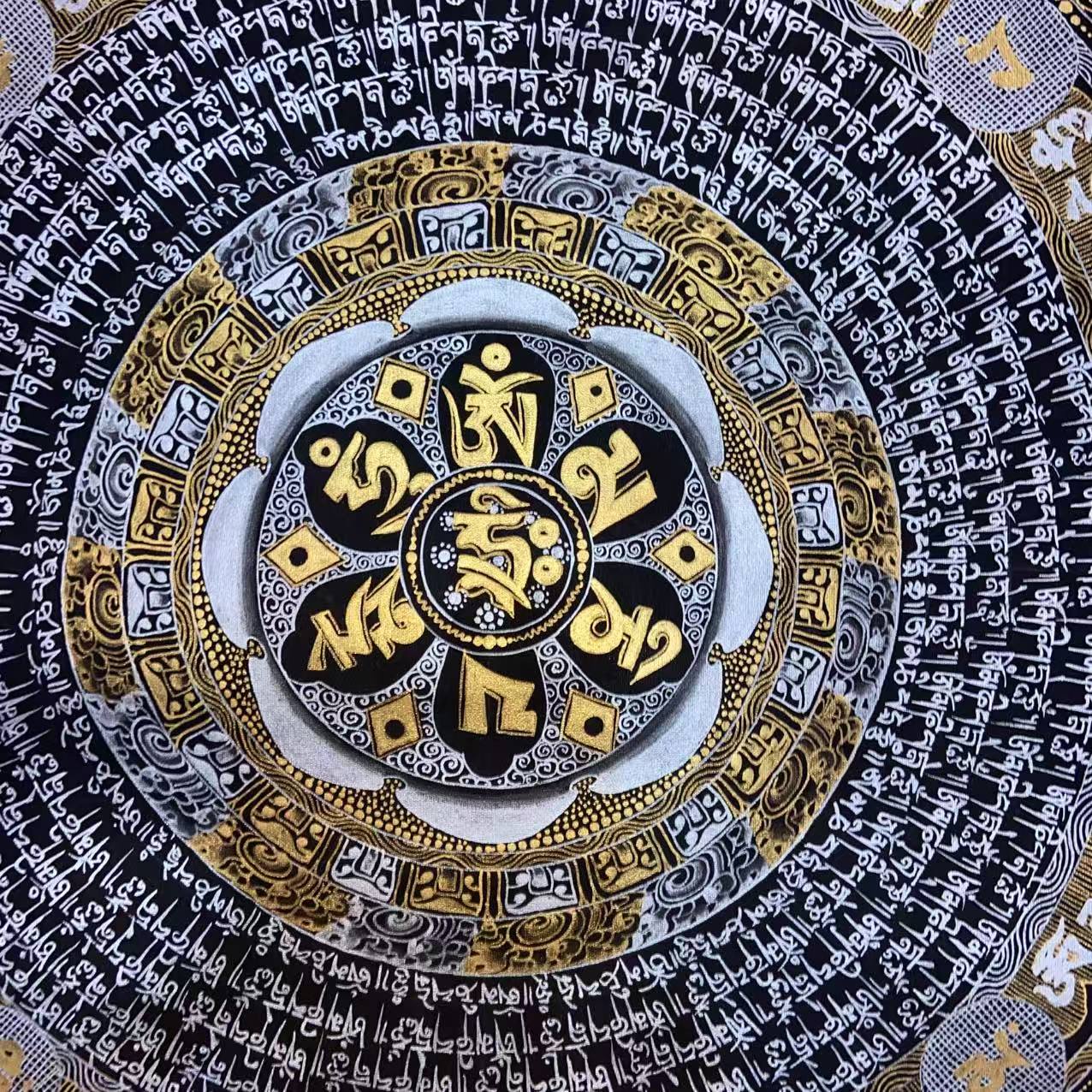 The Om Mantra Mandala Thangka is not just a decorative piece; it is a profound spiritual artifact, radiating peace, harmony, and enlightenment. Whether hung in your home, office, or meditation space, this masterpiece invites blessings, balance, and sacred energy into your life.