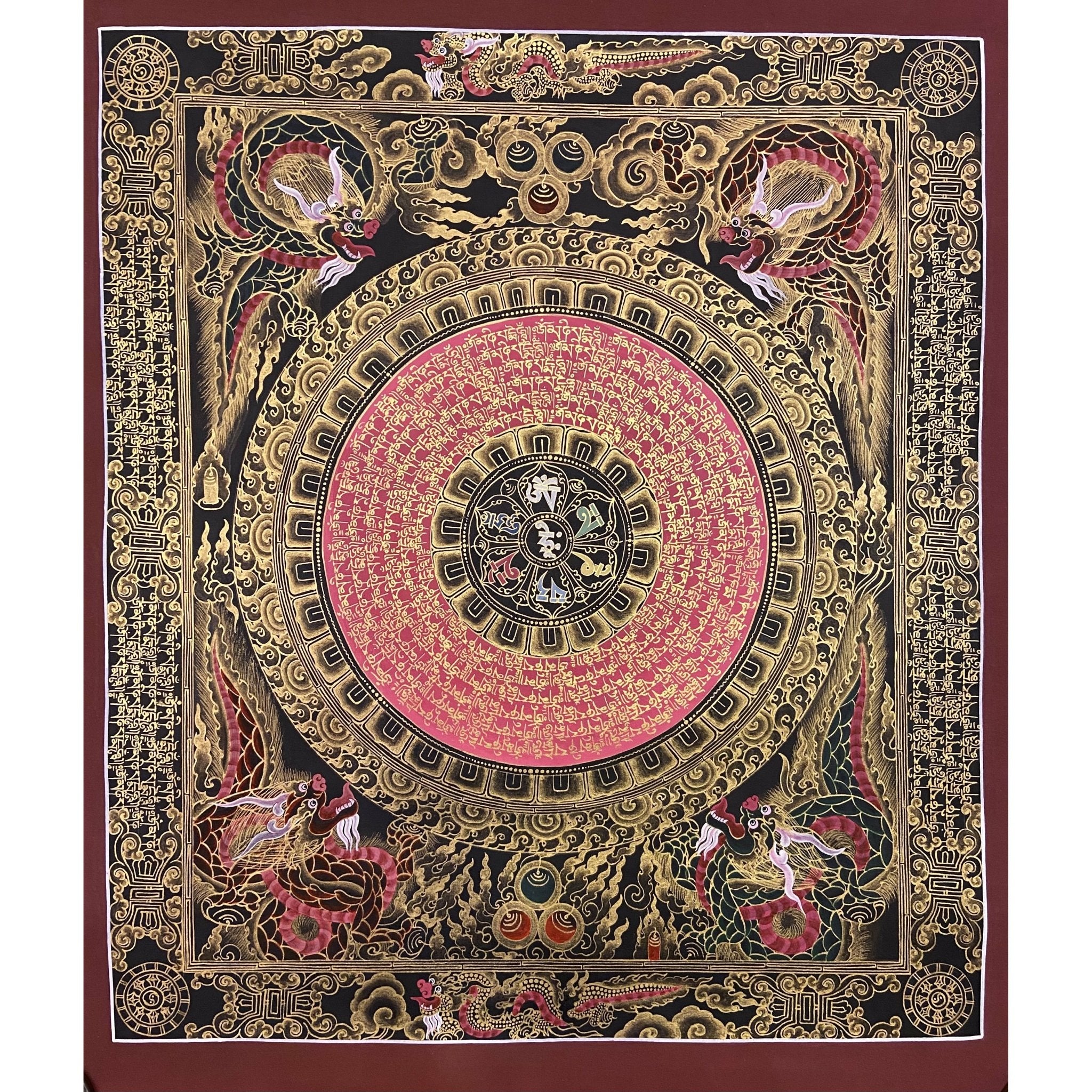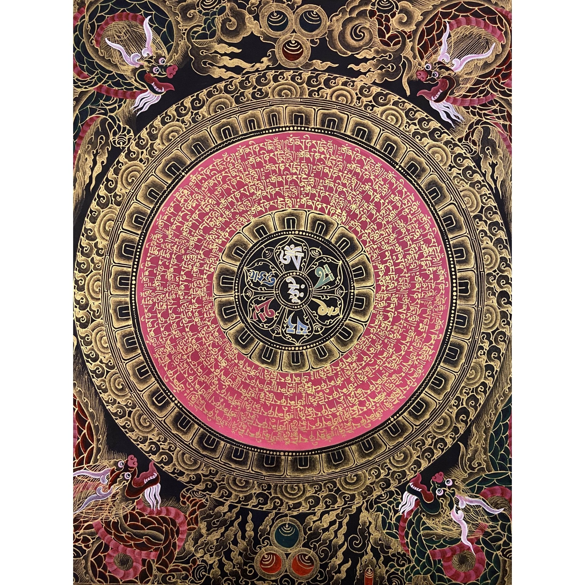 The Om Mantra Mandala Thangka is not just a decorative piece; it is a profound spiritual artifact, radiating peace, harmony, and enlightenment. Whether hung in your home, office, or meditation space, this masterpiece invites blessings, balance, and sacred energy into your life.