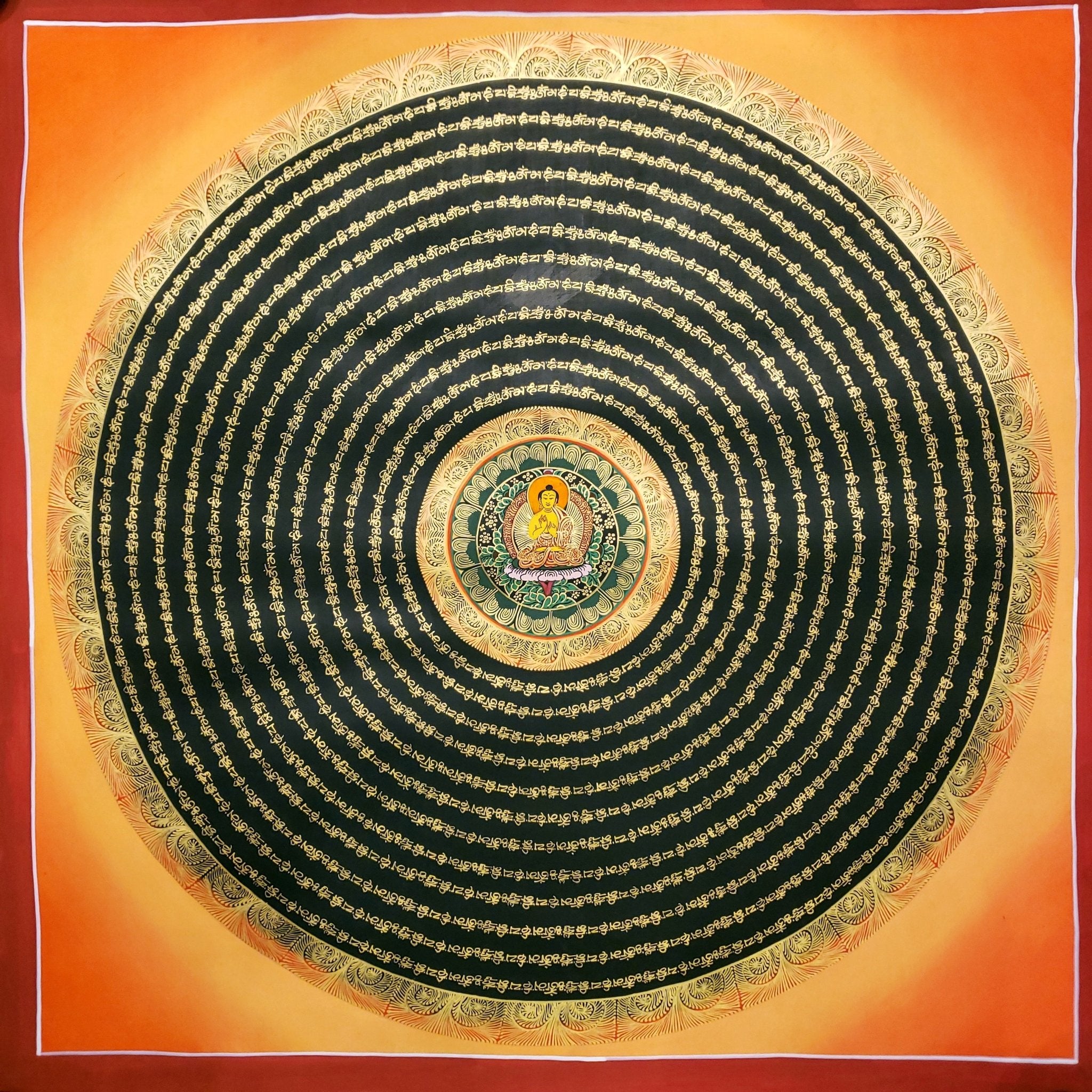 The Om Mantra Mandala Thangka is not just a decorative piece; it is a profound spiritual artifact, radiating peace, harmony, and enlightenment. Whether hung in your home, office, or meditation space, this masterpiece invites blessings, balance, and sacred energy into your life.