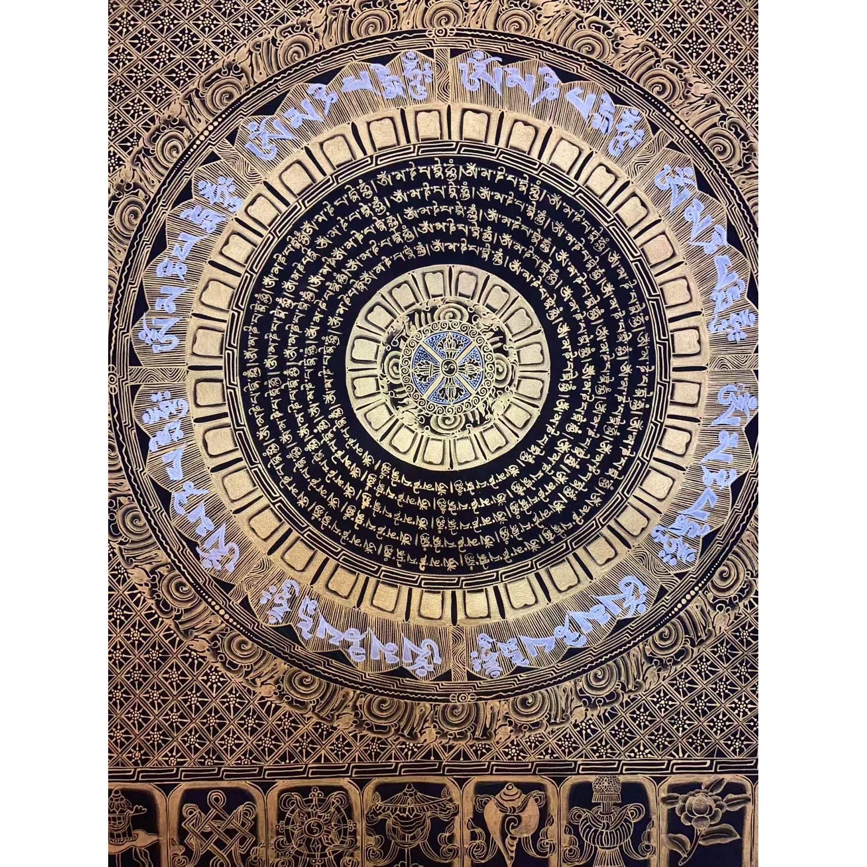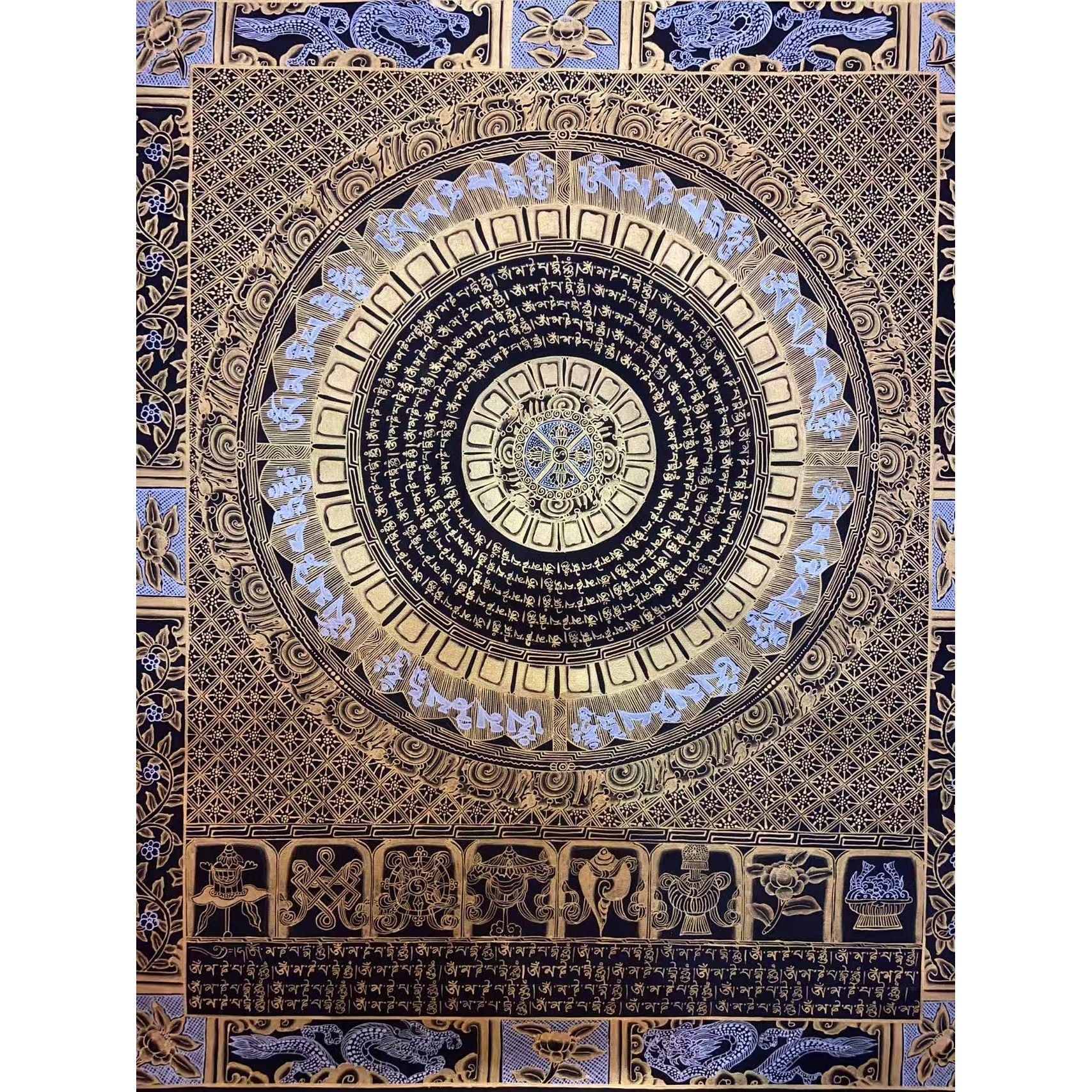 The Om Mantra Mandala Thangka is not just a decorative piece; it is a profound spiritual artifact, radiating peace, harmony, and enlightenment. Whether hung in your home, office, or meditation space, this masterpiece invites blessings, balance, and sacred energy into your life.