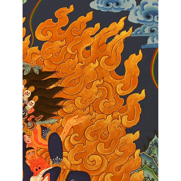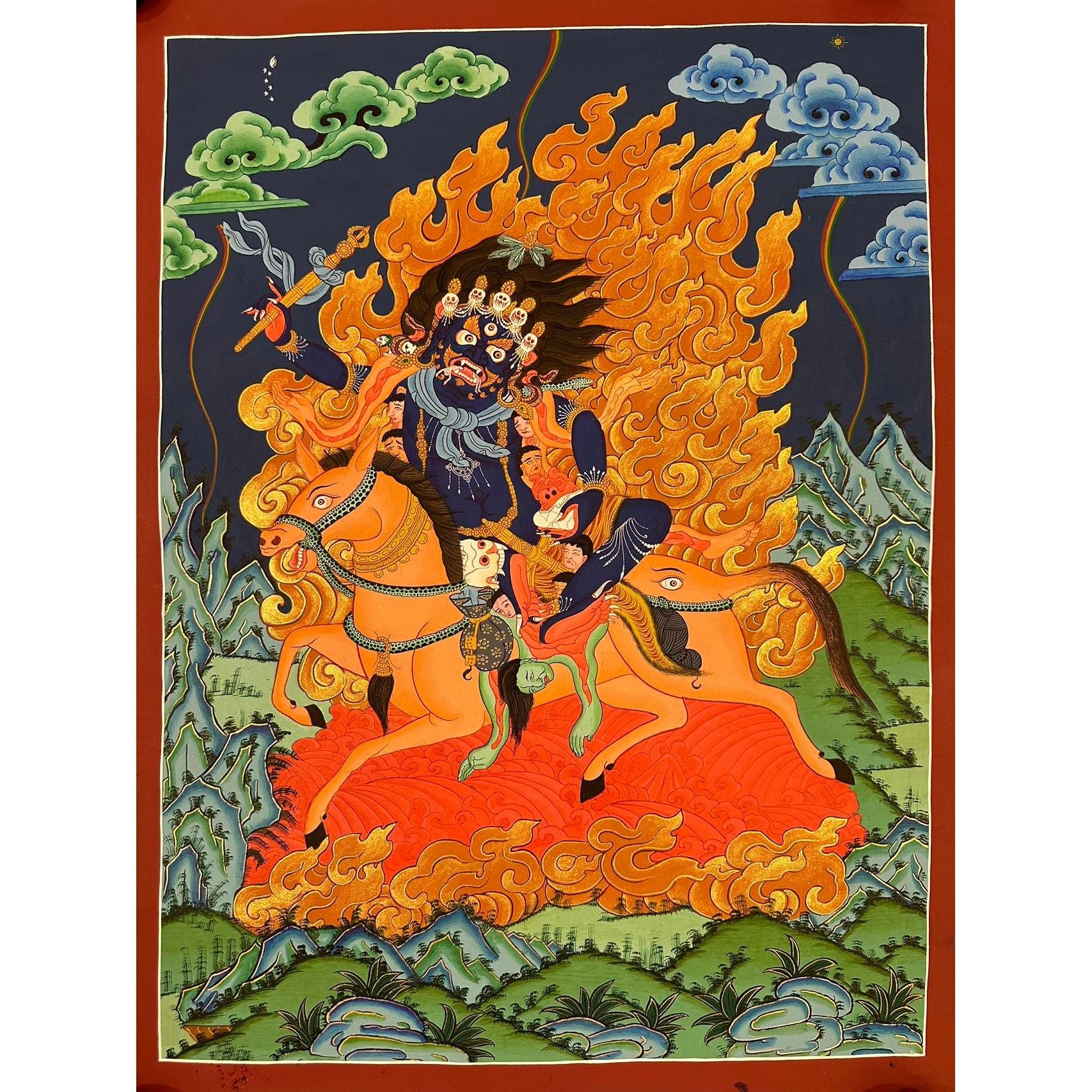 Invite the powerful presence of Palden Lhamo, the fierce protector of Tibet, into your home with this exquisite hand-painted Tibetan Thangka. Crafted by skilled artisans in Kathmandu, Nepal, this sacred artwork makes a striking addition to any room. It can serve as a focal point for your home décor, office, or family altar, bringing both aesthetic beauty and spiritual depth. Perfect for meditation and emotional healing, this Thangka channels the protective energy of Tibetan Buddhism.