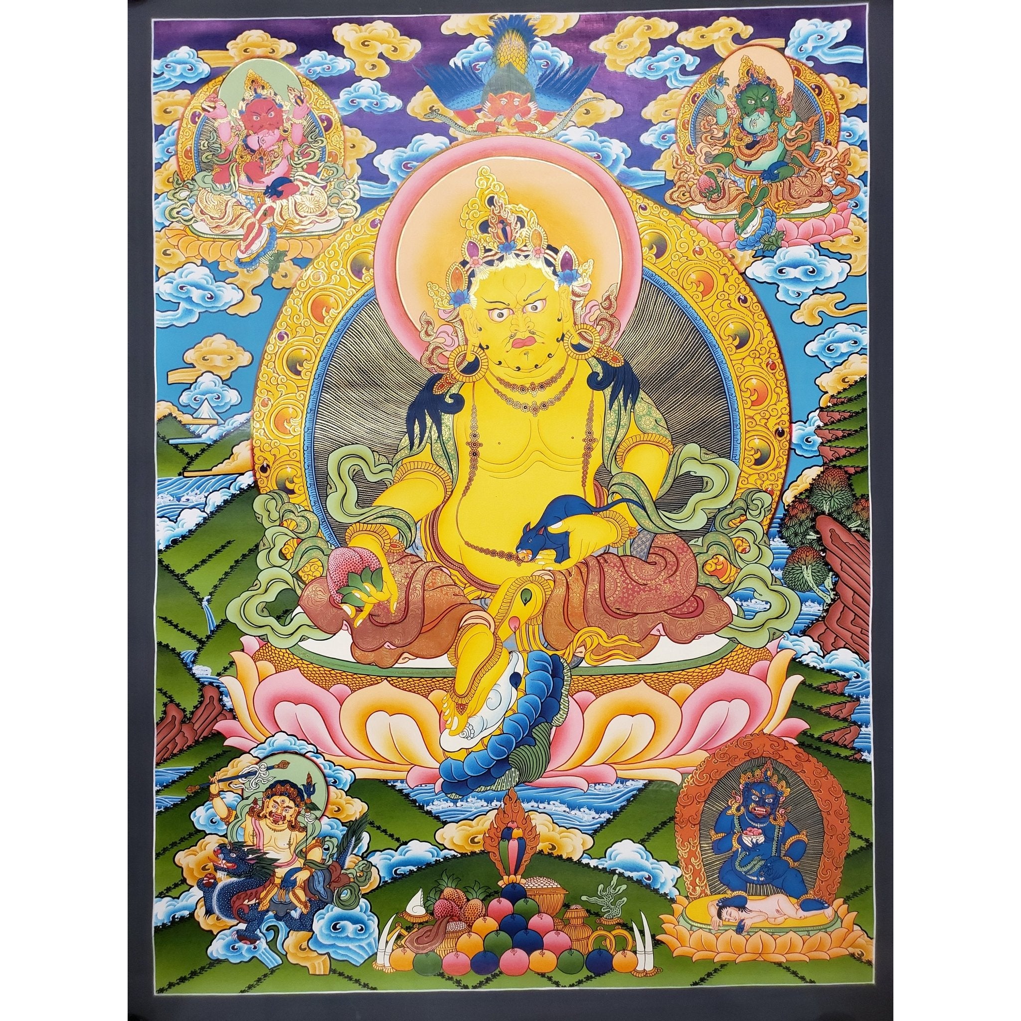 Whether for personal use or as a meaningful gift, this Thangka embodies the power of the Five Jambhalas, providing wealth, protection, and spiritual growth. It is a treasured addition that will bring positive energy into your life for years to come.