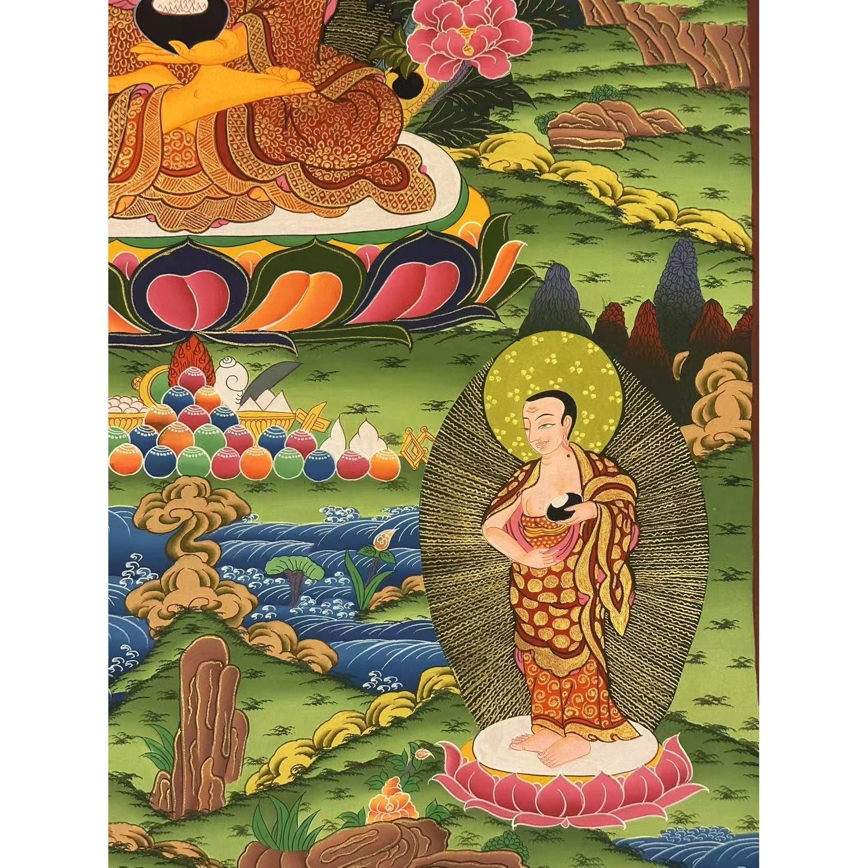 • Exquisite Craftsmanship: Hand-painted using Tibetan colors and dust of gold, this Thangka showcases exceptional quality.