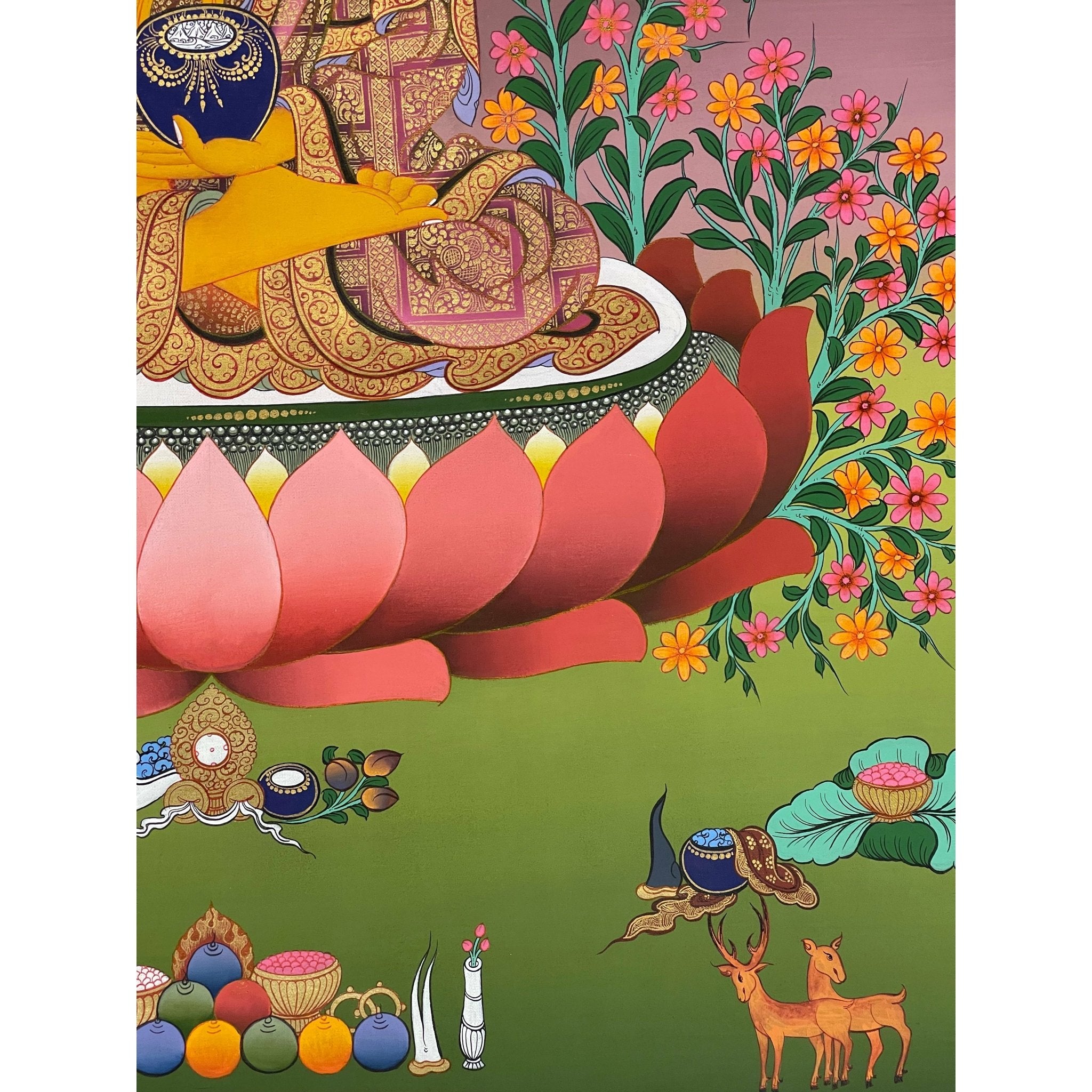 - Exquisite Craftsmanship: Hand-painted using Tibetan colors and dust of gold, this Thangka showcases exceptional quality.