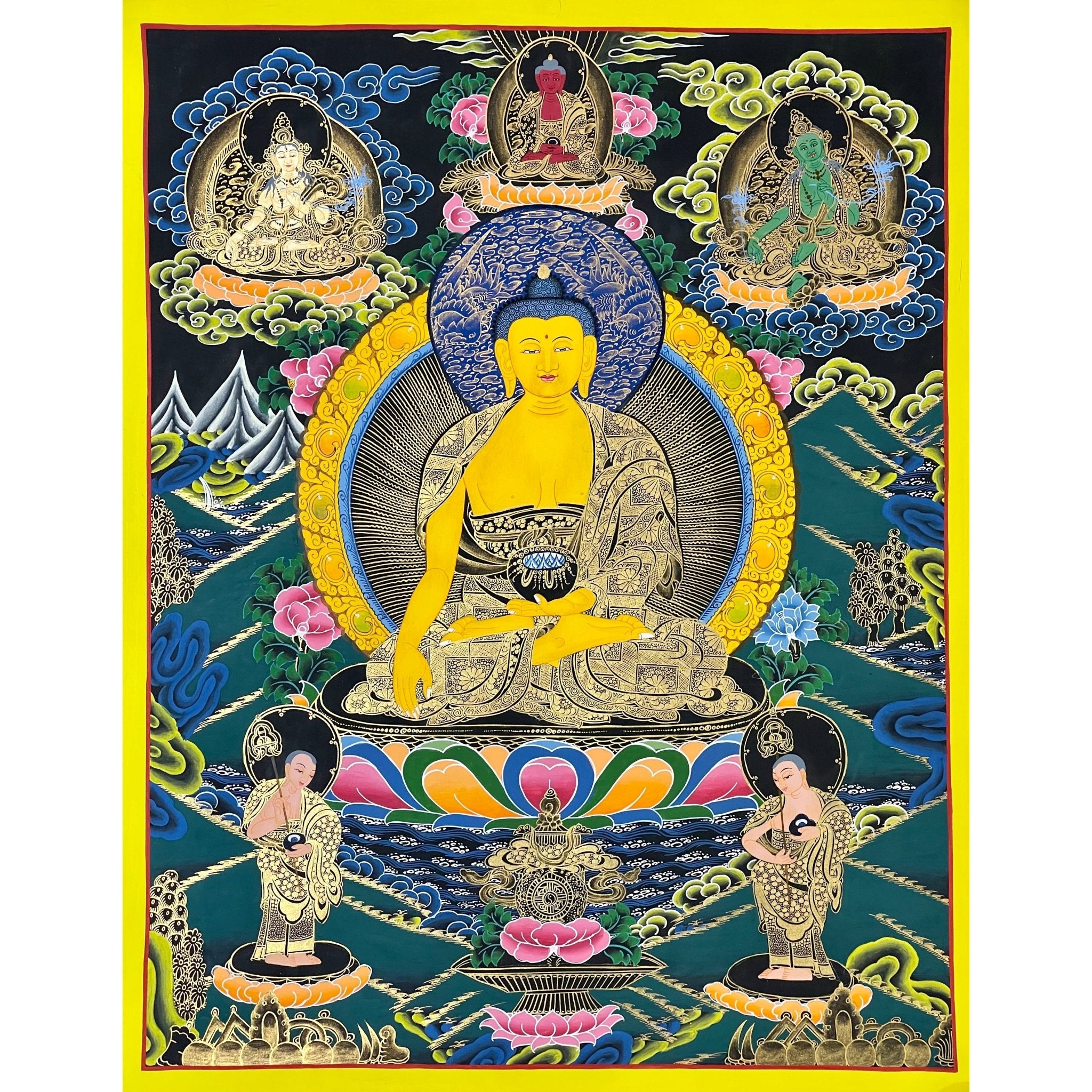 - Exquisite Craftsmanship: Hand-painted using Tibetan colors and dust of gold, this Thangka showcases exceptional quality.