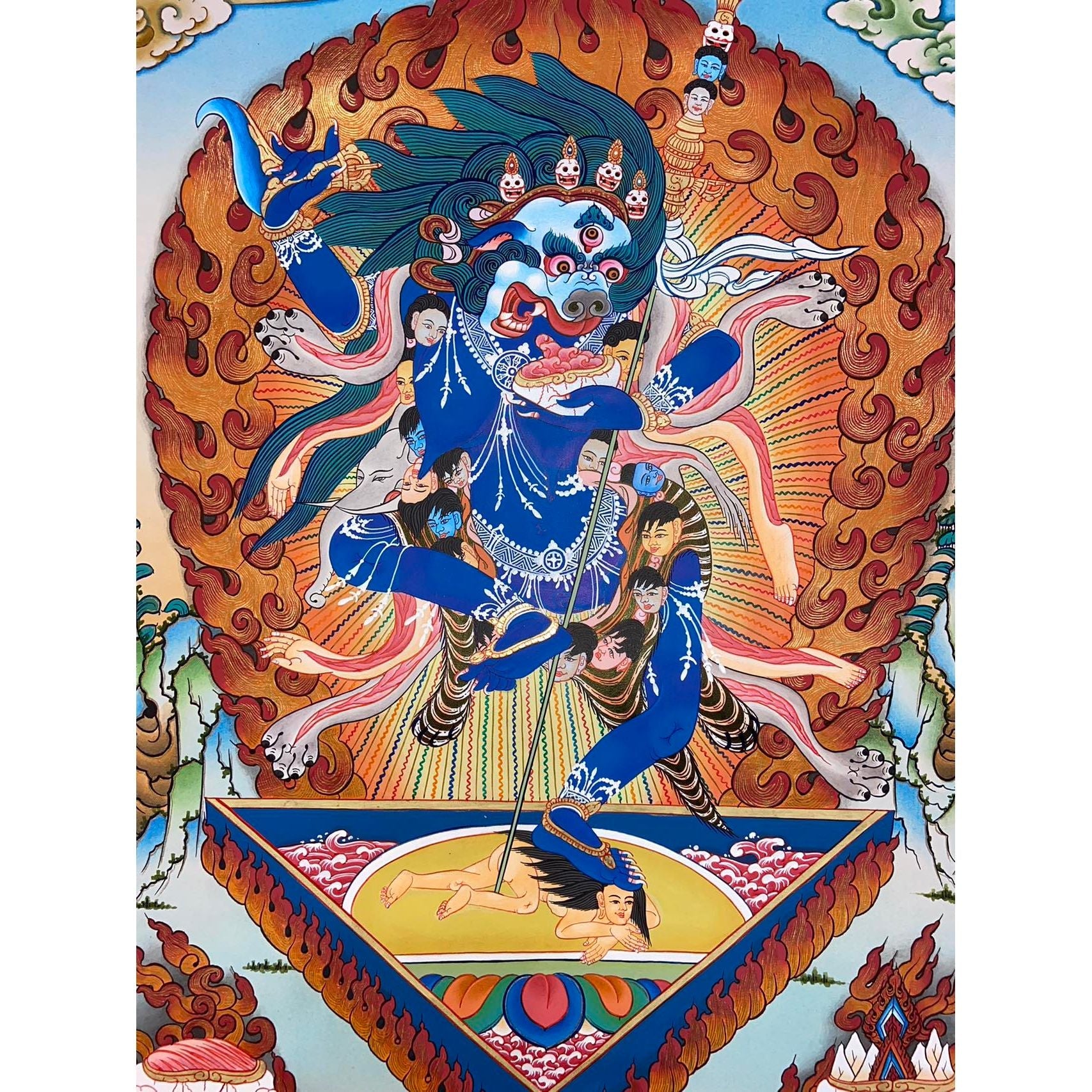 This Simhamukha Thangka is more than just a beautiful piece of art—it is a symbol of fierce protection, wisdom, and spiritual transformation. Whether displayed in your family altar or meditation space, it will infuse your environment with energy, strength, and divine guidance.