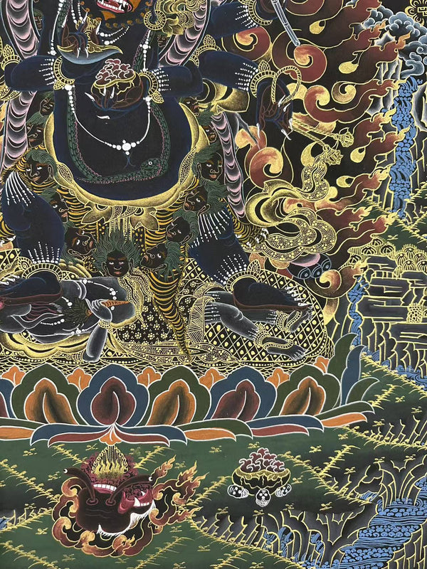 Protector of Dharma: Mahakala safeguards the Buddhist teachings, removing obstacles and bringing spiritual protection.