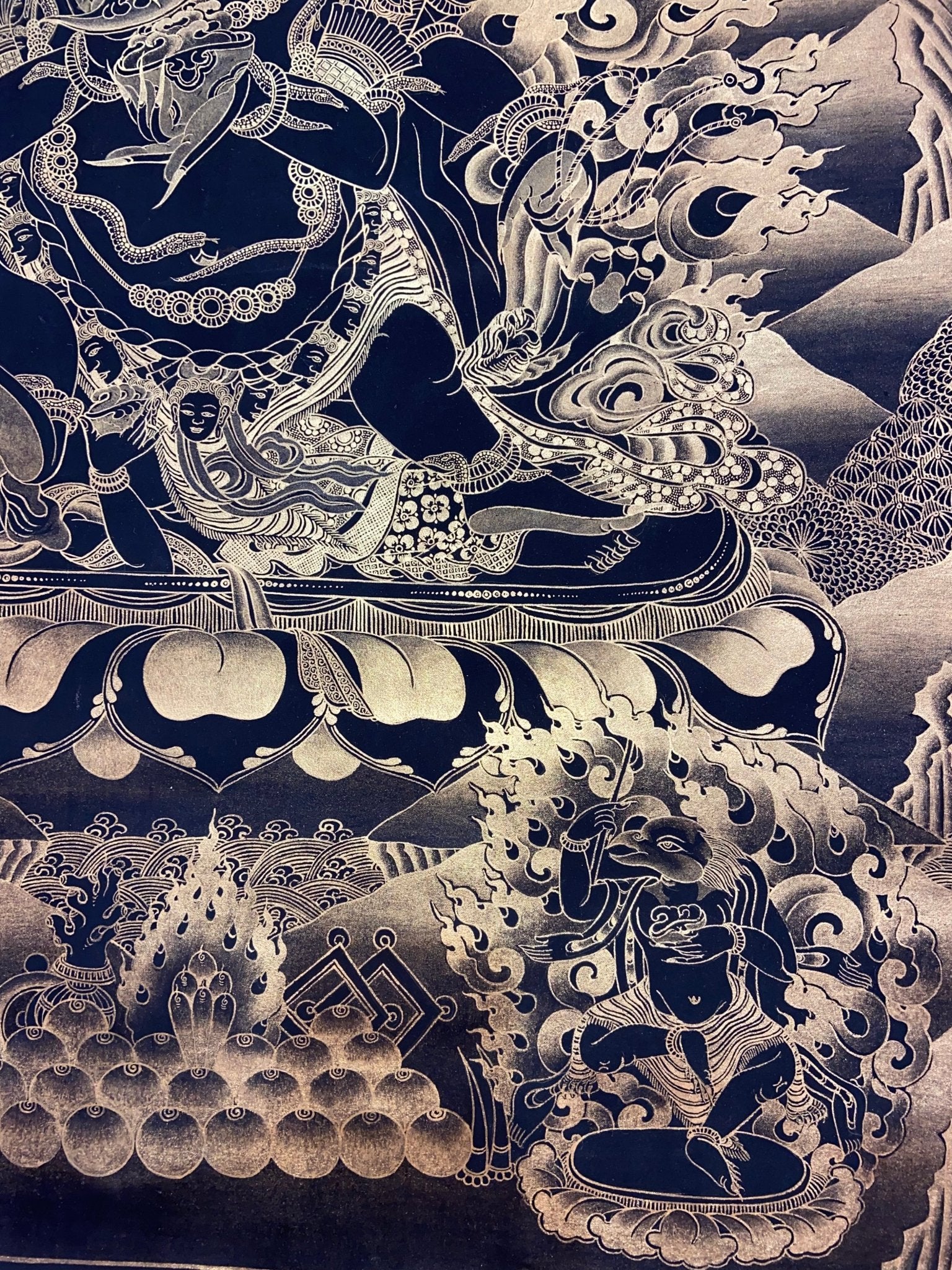 Tibetan Thangka paintings, also known as the “Art of Enlightenment”, are sacred pieces of art that are rich in symbolism. They are important supports that are revered for meditation and visualization.