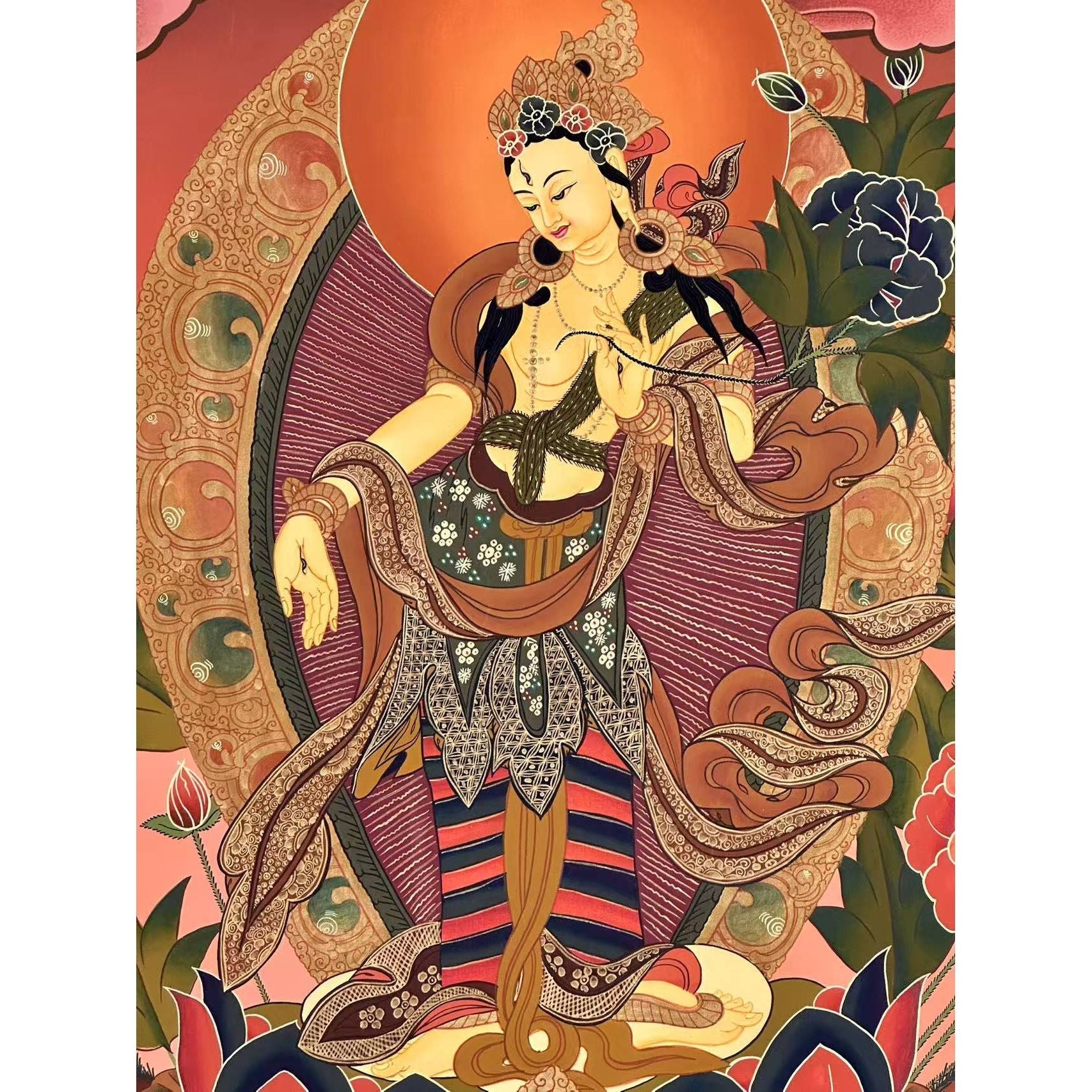 - Exquisite Craftsmanship: Hand-painted using dust of gold and Tibetan colors, showcasing exceptional craftsmanship and spiritual depth.