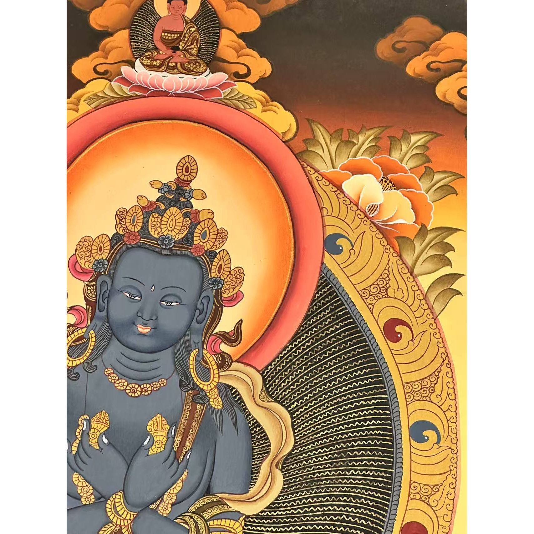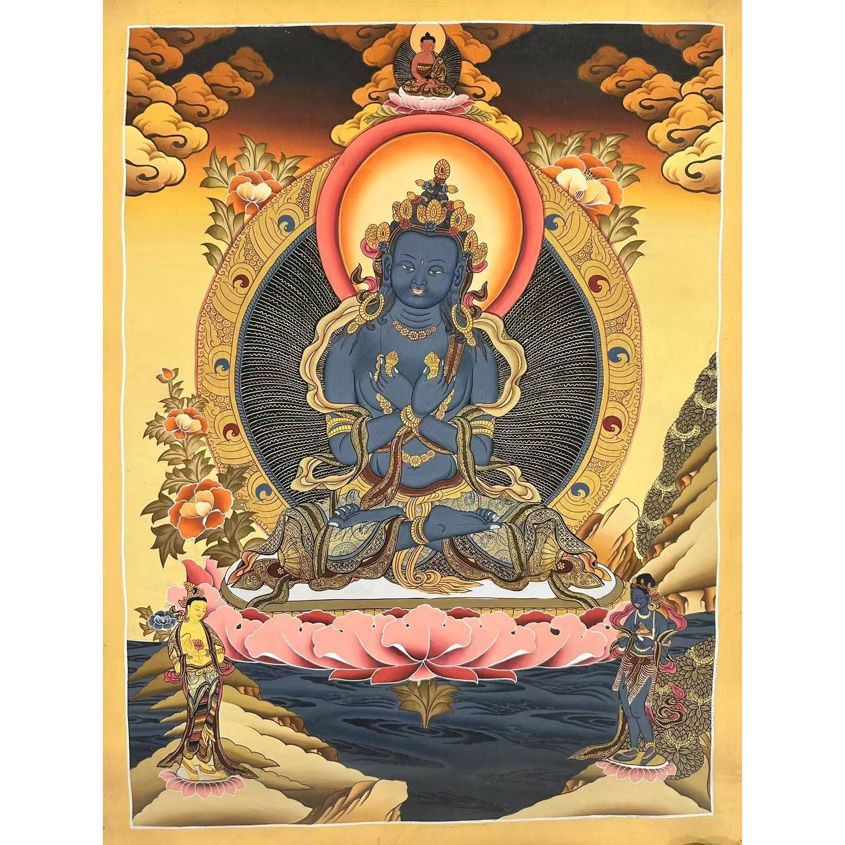 A Powerful Symbol of Vajrayana Buddhism The Vajradhara Thangka invites the powerful transformative energy of Vajradhara into your home, encouraging spiritual development and personal transformation. Whether used for meditation or as an inspirational wall hanging, it represents the ultimate victory over ignorance and suffering, guiding you towards enlightenment.