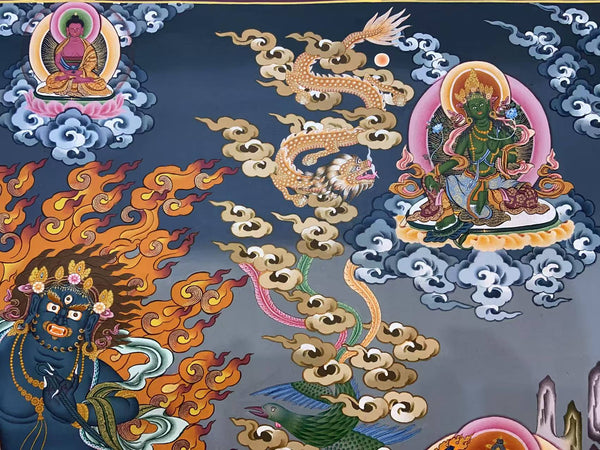 Thangka paintings are painted using natural minerals such as agate, gold, silver, cinnabar, saffron, ocher, rhubarb,lapis and many other minerals. To create the ideal pigment for painting, these materials are ground several times. This makes the materials even more durable and long-lasting. Thus, you can surely expect the color of the Thangka to withstand the test of time.