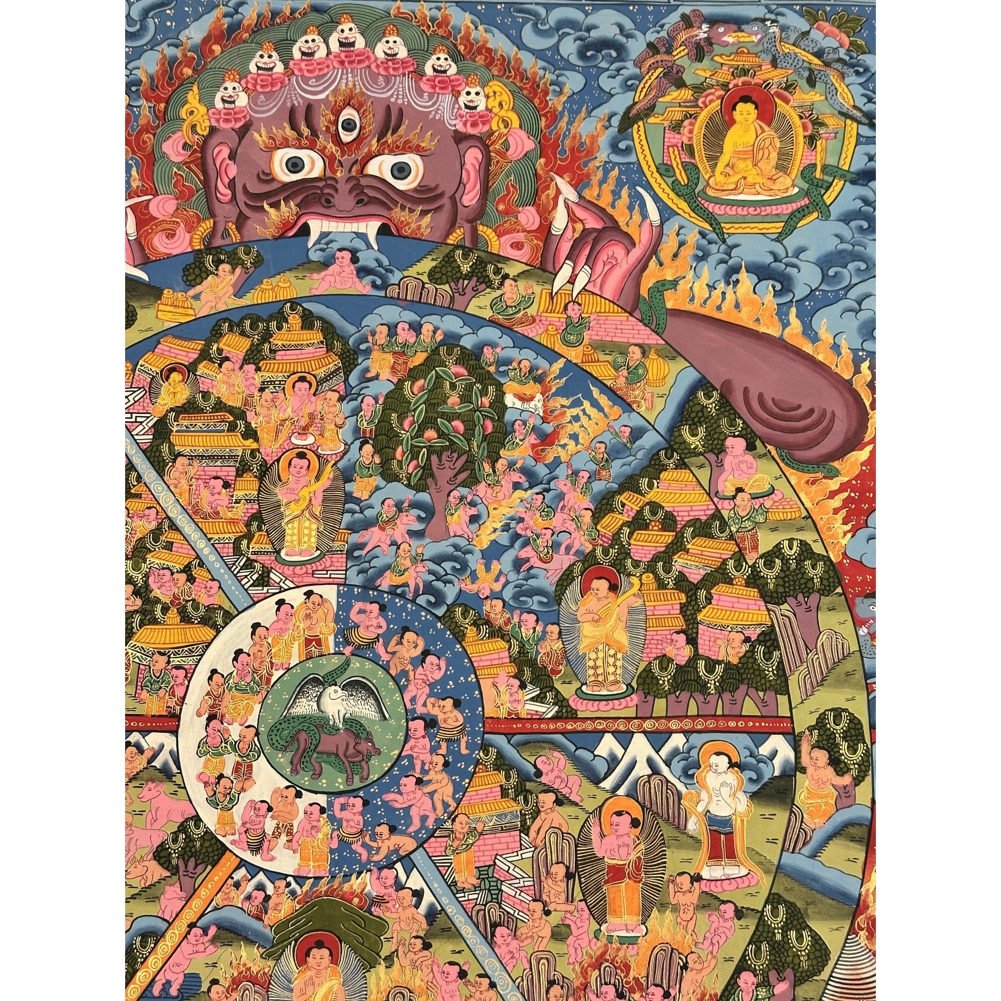 This Thangka is a perfect gift for those dedicated to their spiritual practice and those seeking a deeper understanding of karma, rebirth, and enlightenment. Its intricate symbolism provides a path to personal growth and transformation.