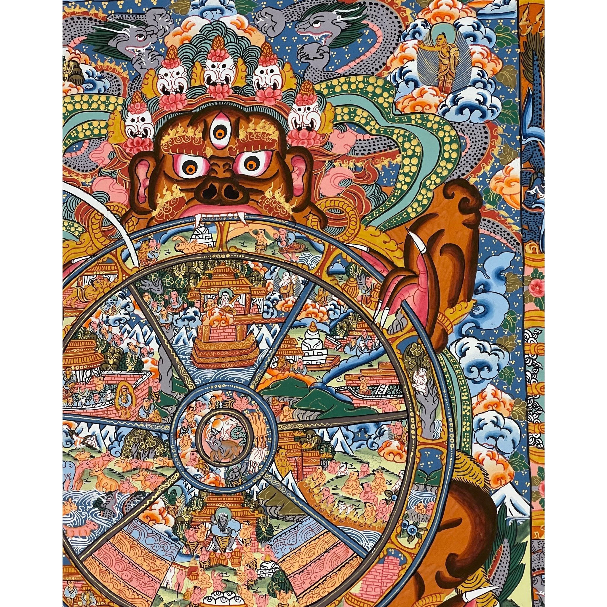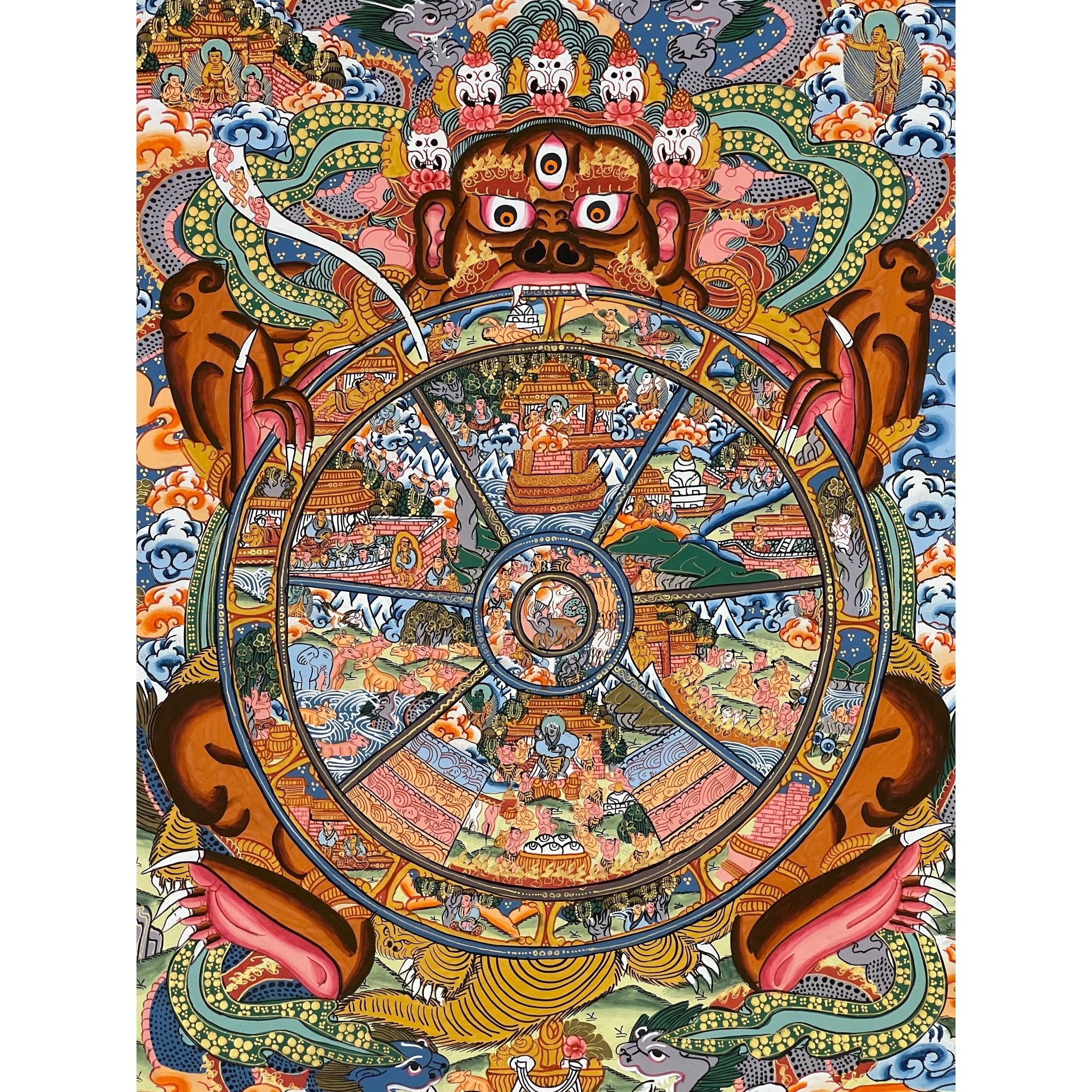 This Thangka is a perfect gift for those dedicated to their spiritual practice and those seeking a deeper understanding of karma, rebirth, and enlightenment. Its intricate symbolism provides a path to personal growth and transformation.