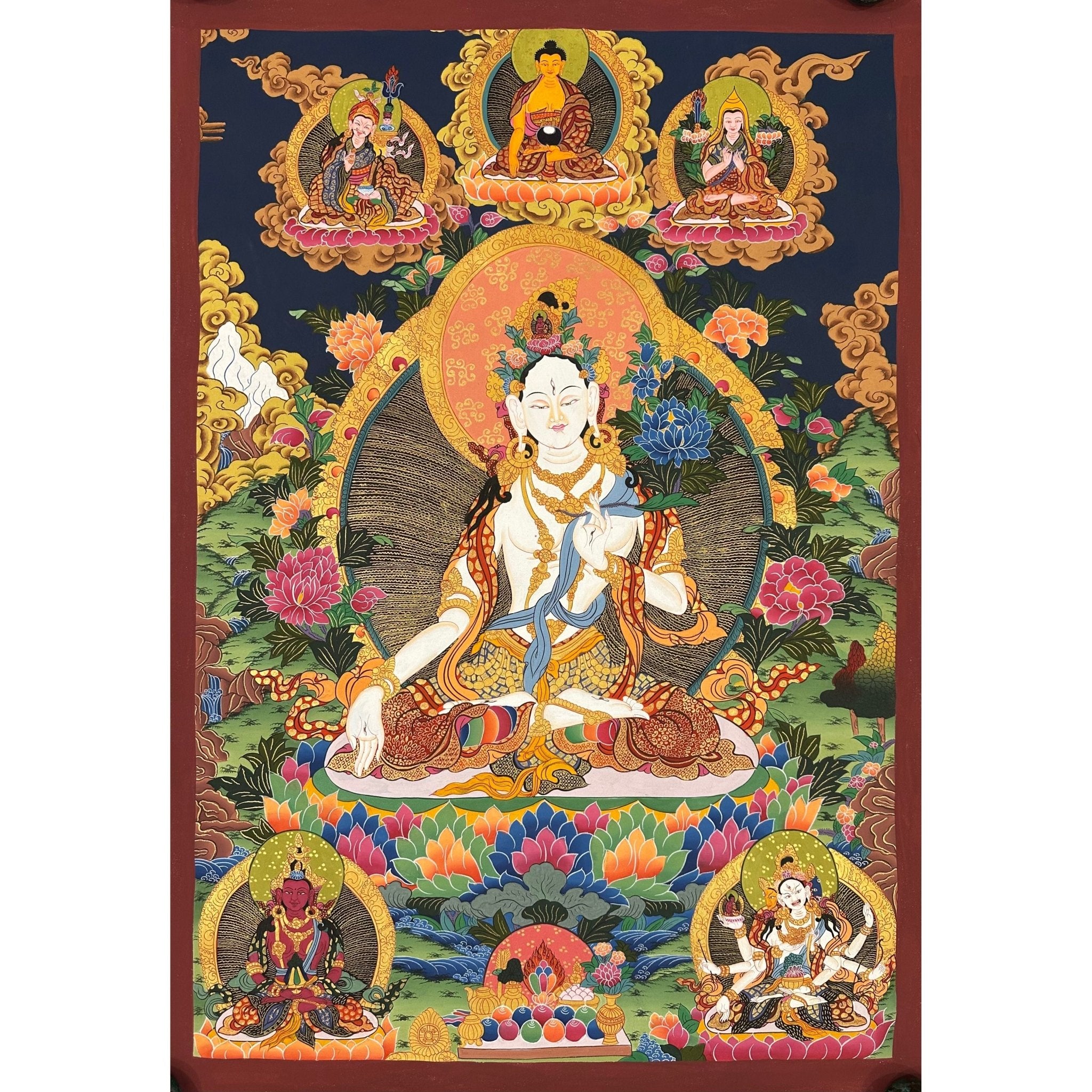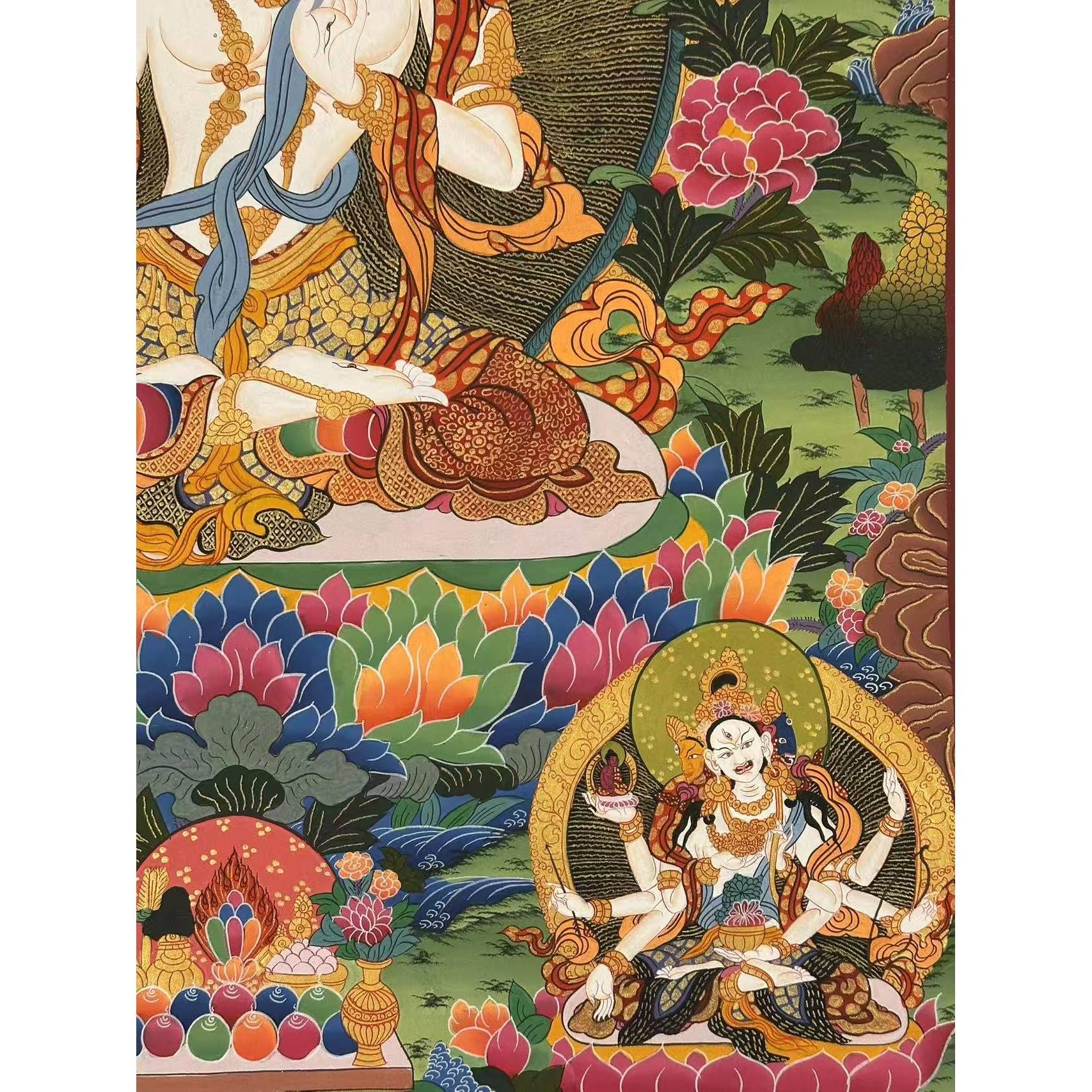- Exquisite Craftsmanship: Hand-painted using dust of gold and Tibetan colors, showcasing exceptional craftsmanship and spiritual depth.