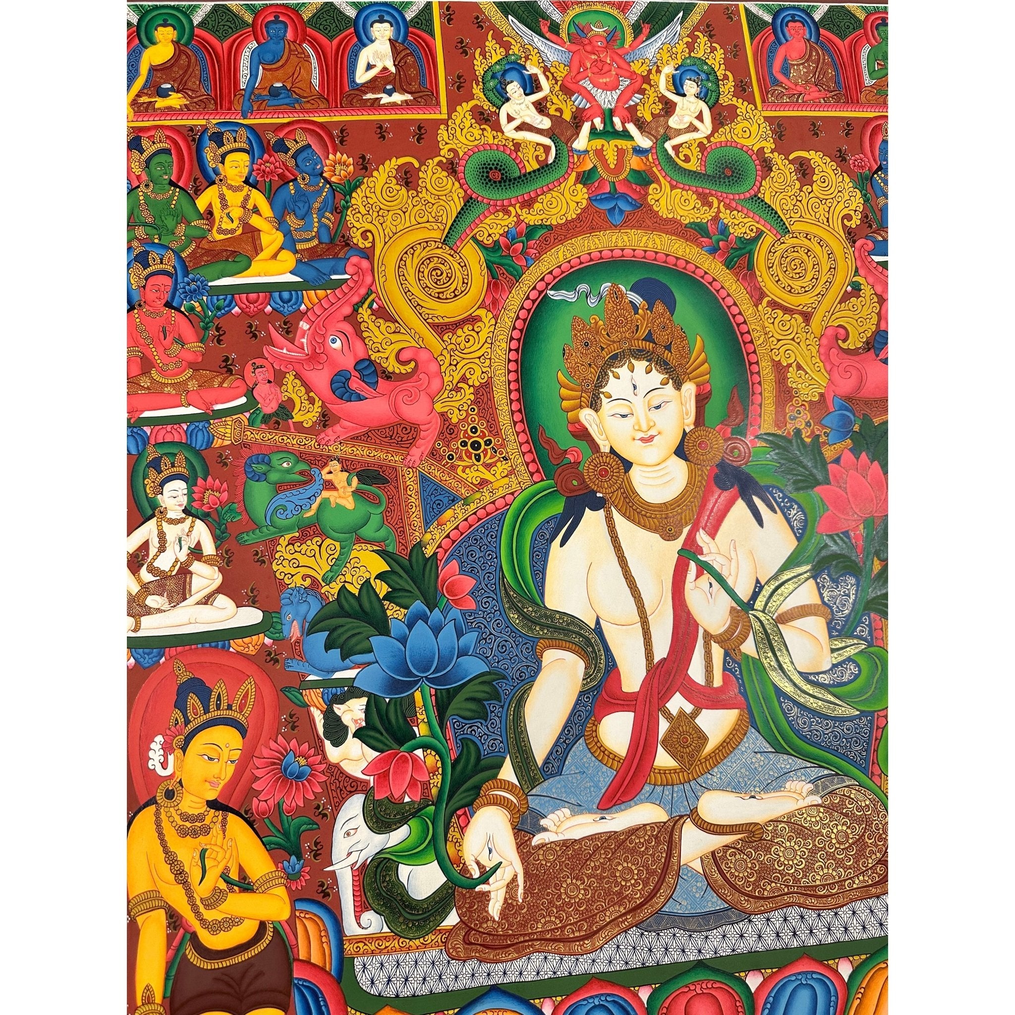 • Exquisite Craftsmanship: Hand-painted using dust of gold and Tibetan colors, showcasing exceptional craftsmanship and spiritual depth.