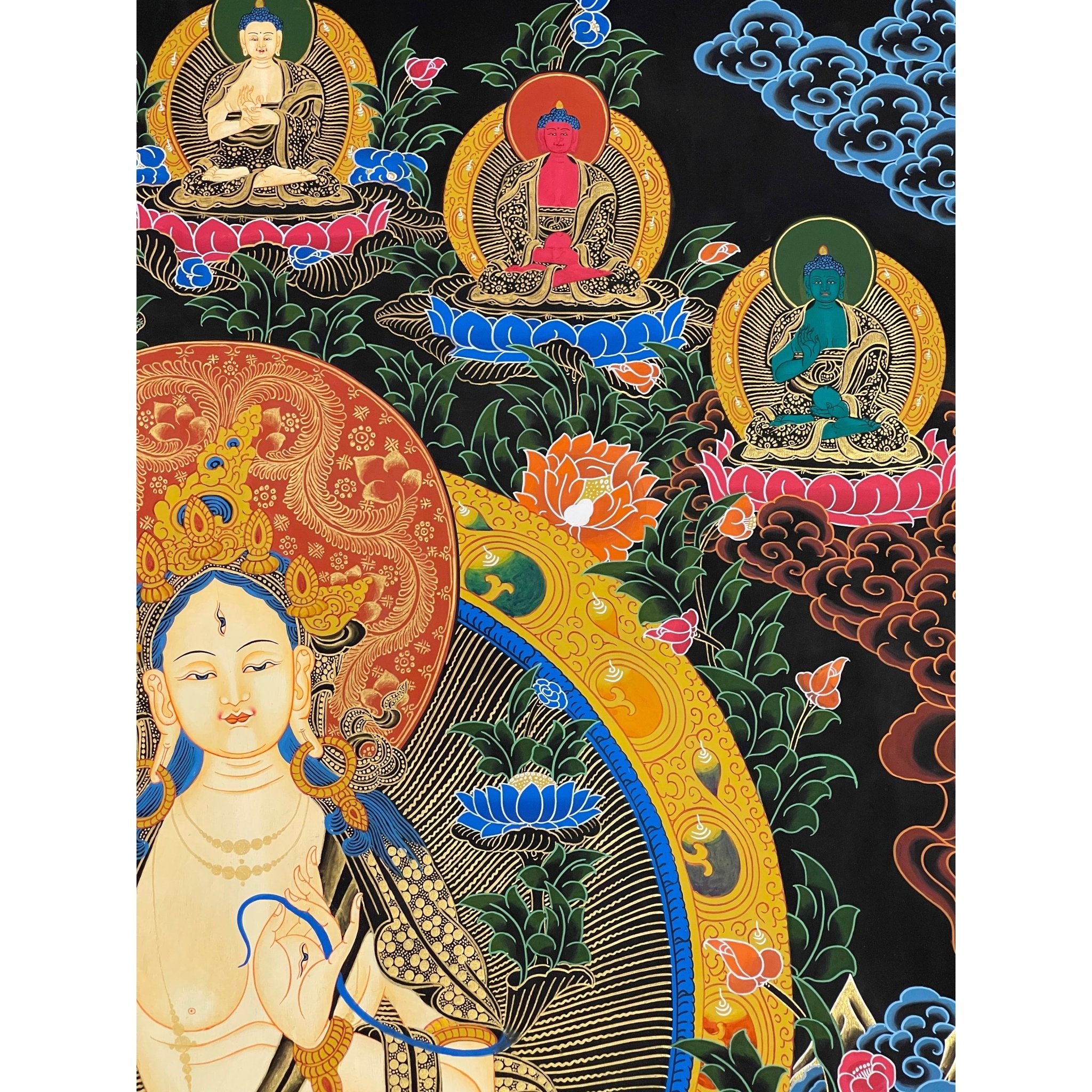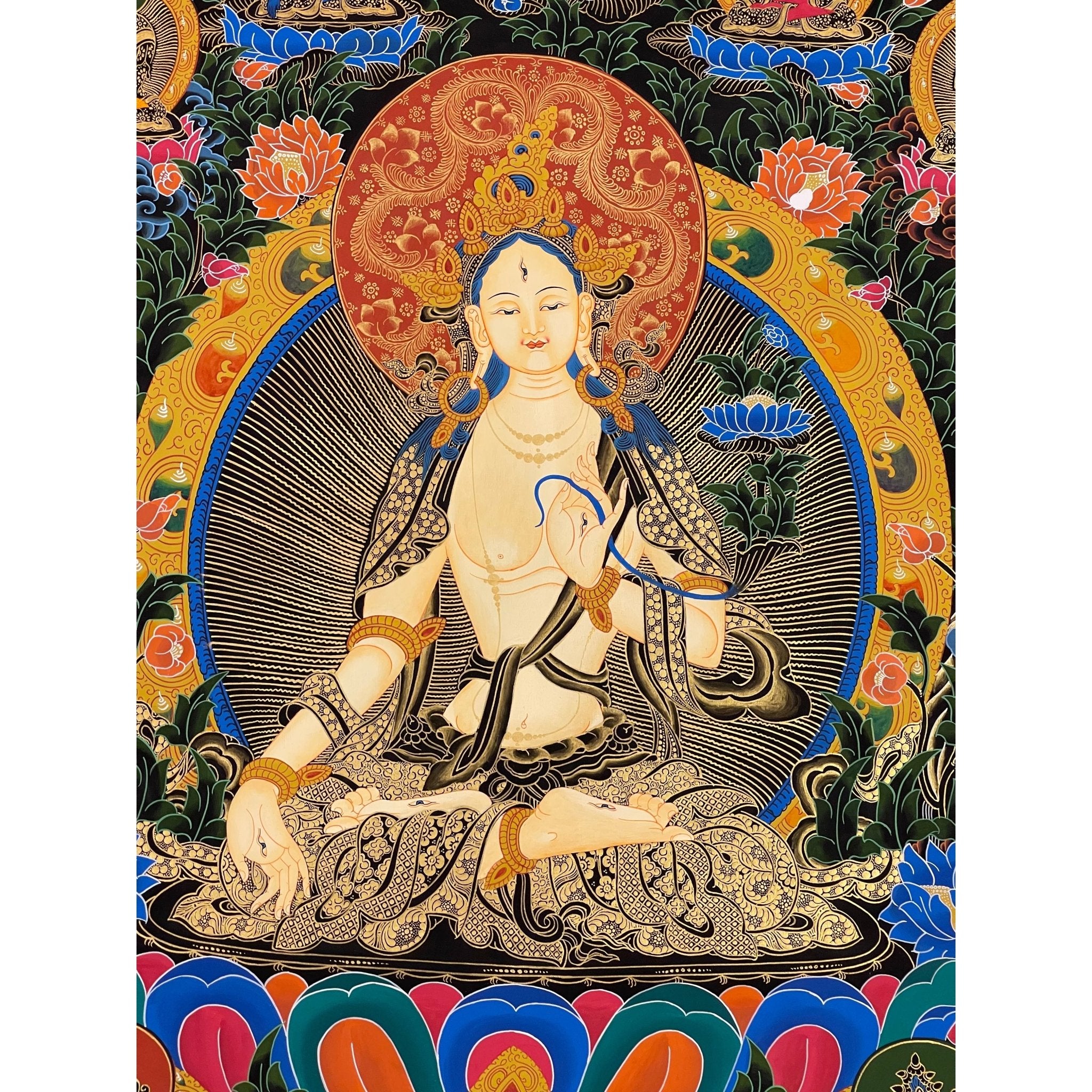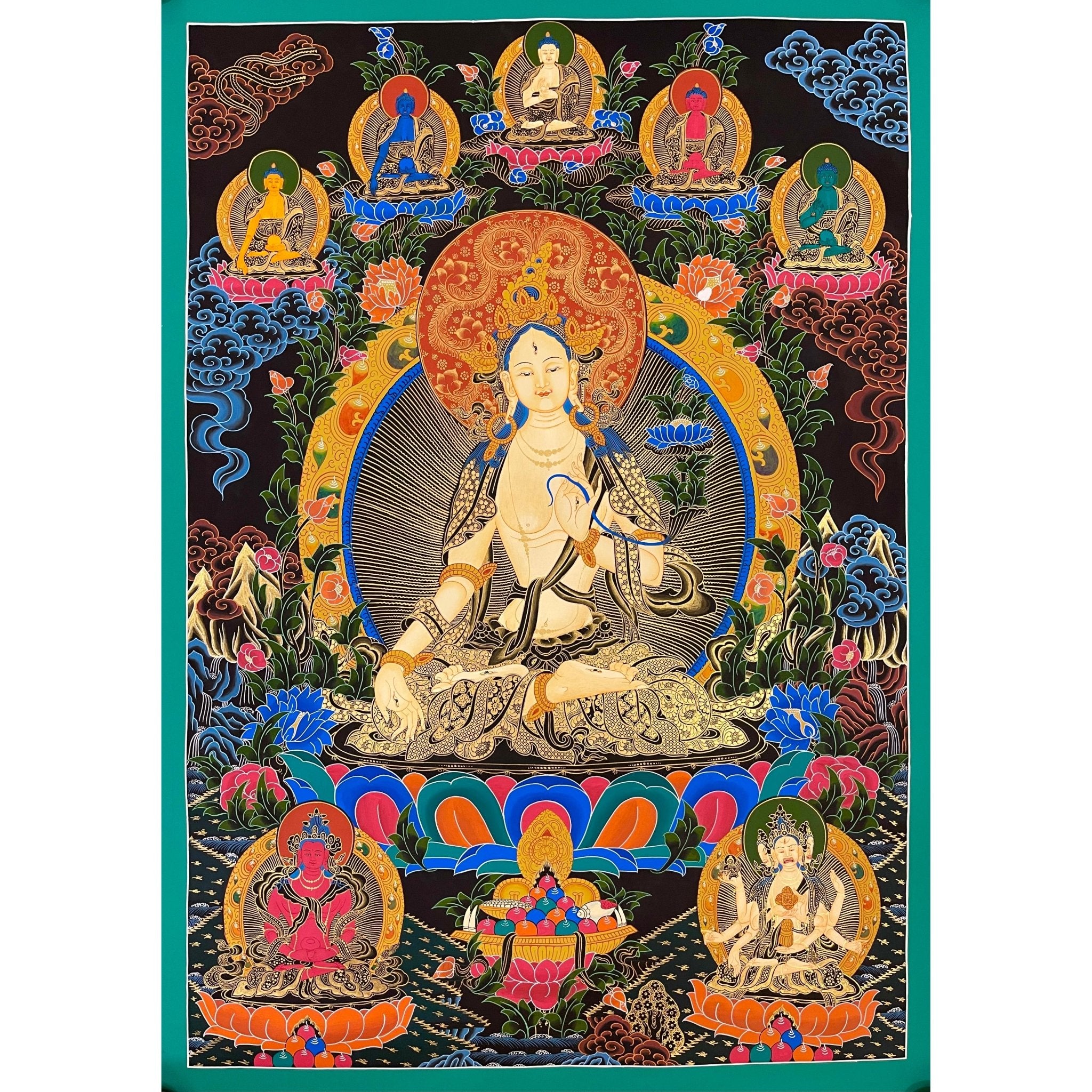 - Exquisite Craftsmanship: Hand-painted using dust of gold and Tibetan colors, showcasing exceptional craftsmanship and spiritual depth.