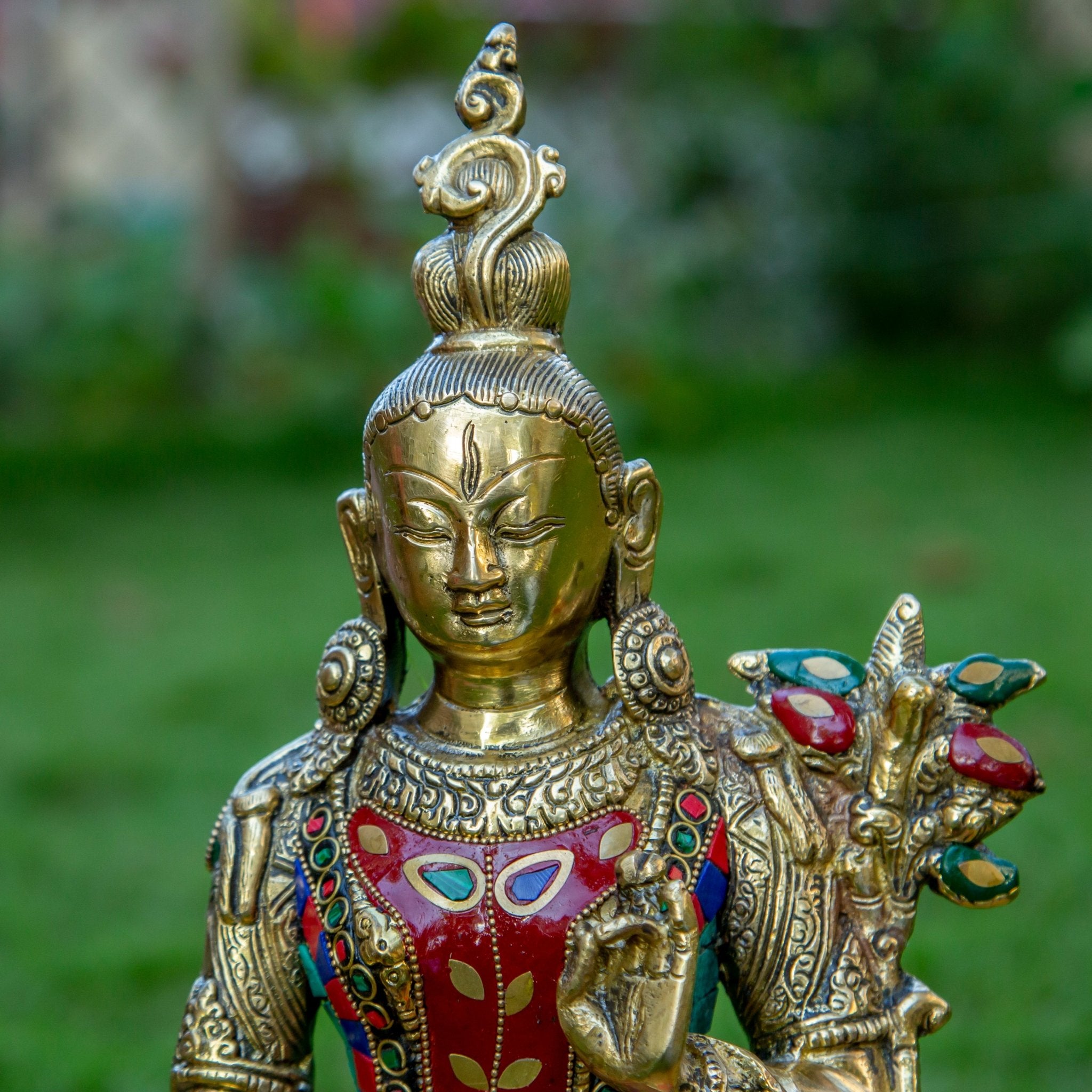 Handcrafted in Nepal by skilled artisans, the statue blends sacred artistry with symbolic semi-precious stones, creating a powerful representation of Tara’s infinite grace and protective presence.