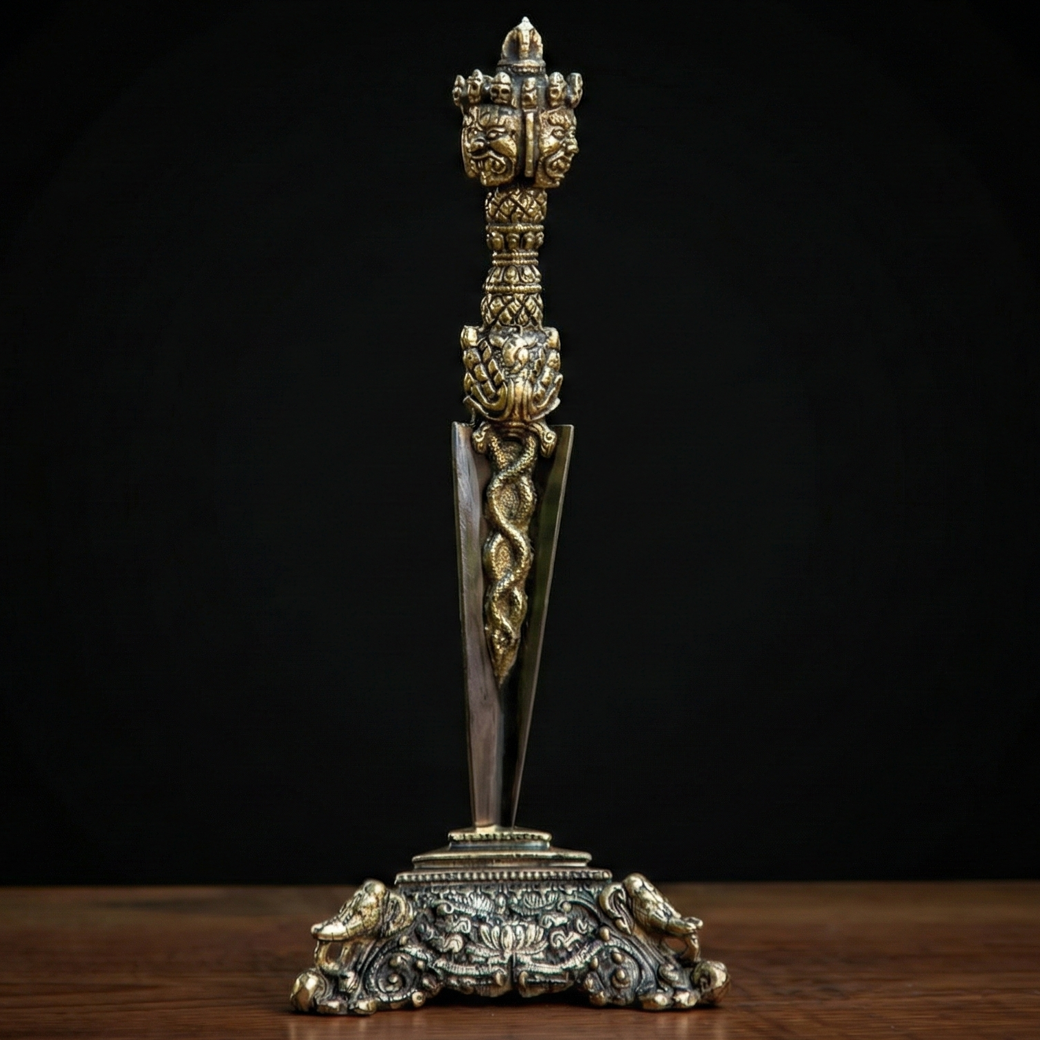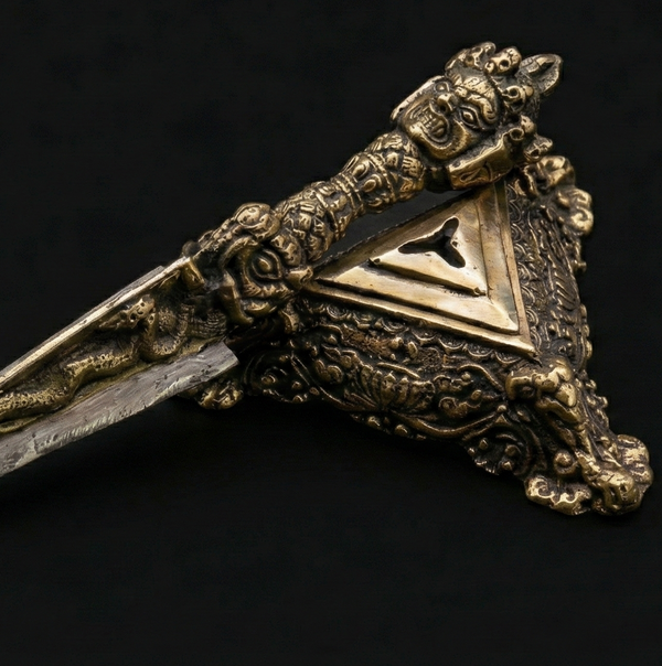 Ancient Vedic Connection: Patterned after a tool used to tether sacrificial animals, the Phurba is regarded as a weapon to subdue evil spirits.