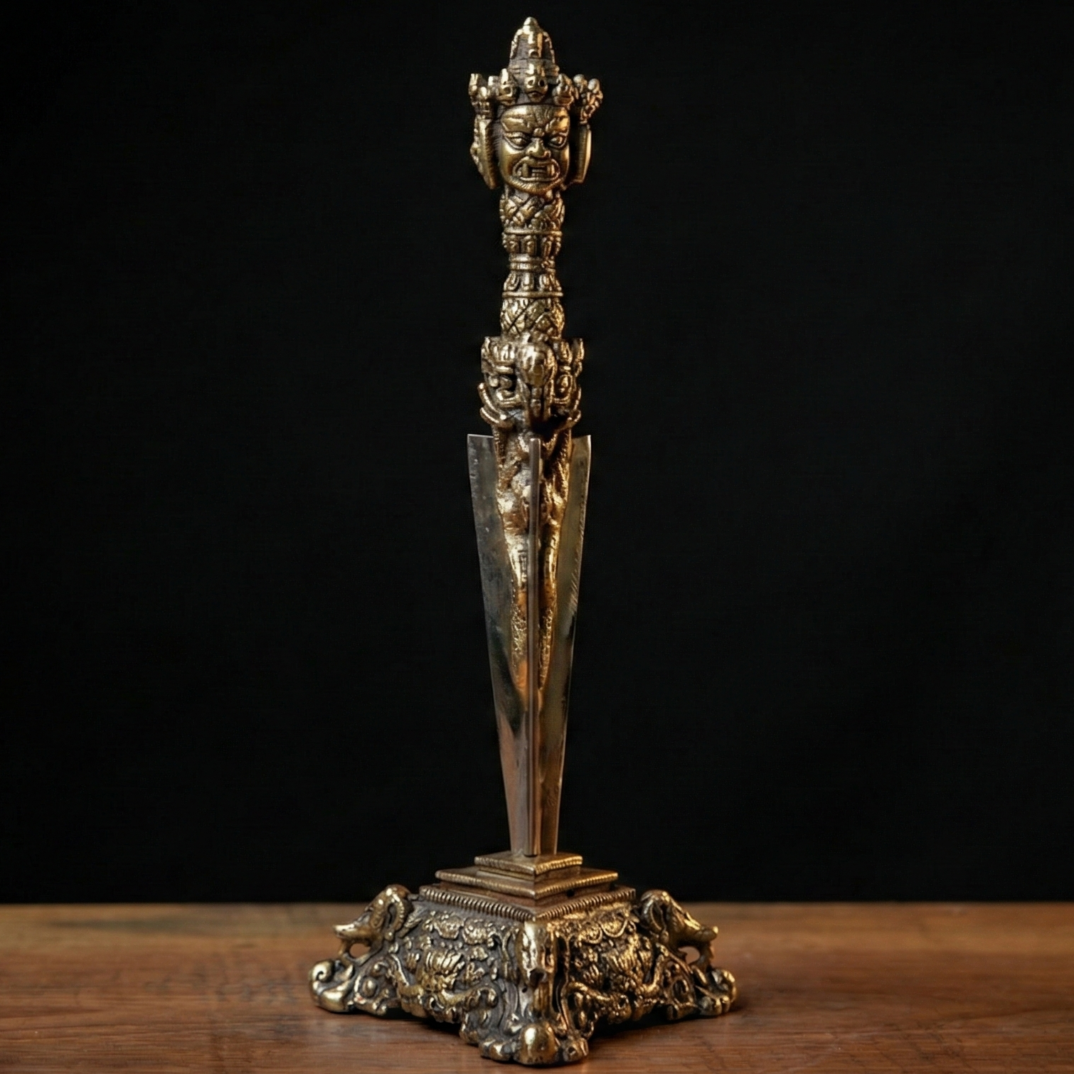 Handcrafted in bronze in Nepal by highly skilled artisans, this Phurba is a powerful spiritual object as well as a beautiful and meaningful piece for any collection.