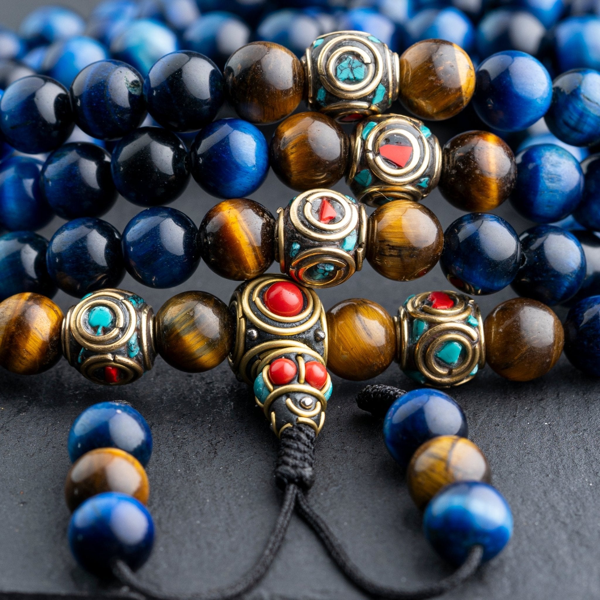 Blue Tigers Eye not only supports emotional and mental well-being but also aids in cleansing and energizing specific chakras, particularly the throat and third eye chakras. These benefits help improve communication and open up your intuitive senses. Whether worn alone for a simple, minimalist look or stacked with other malas and bracelets, this mala is a stunning accessory that brings both style and spiritual benefits.