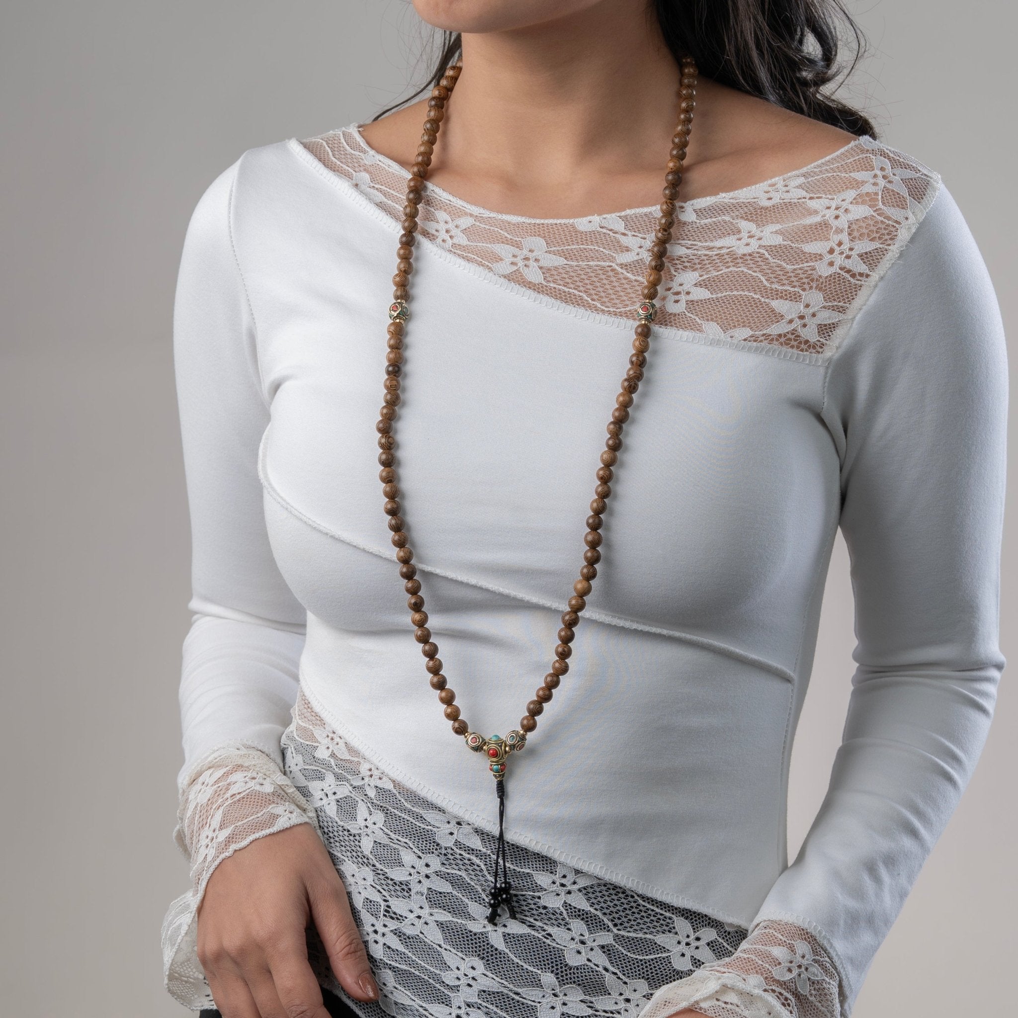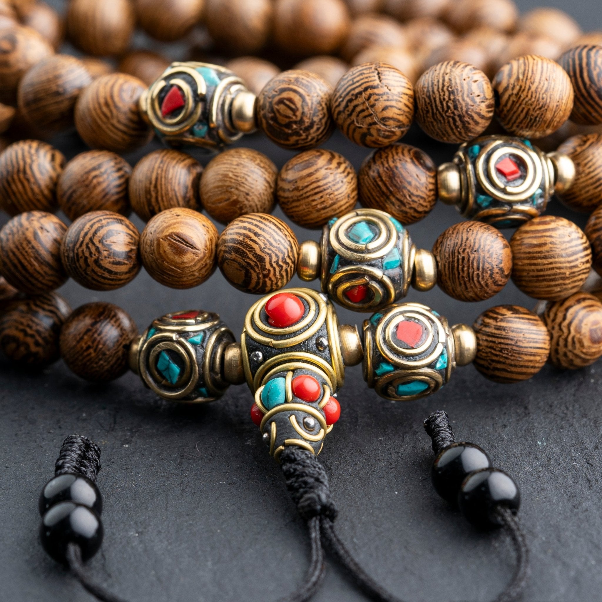 This Wenge Wood Mala embodies grounding energy, resilience, and spiritual harmony. Wenge wood, known for its rich dark texture and natural strength, is revered for its ability to promote focus, stability, and deep meditation. It carries an earthy energy that enhances inner balance, making it an ideal tool for spiritual growth and mindfulness.