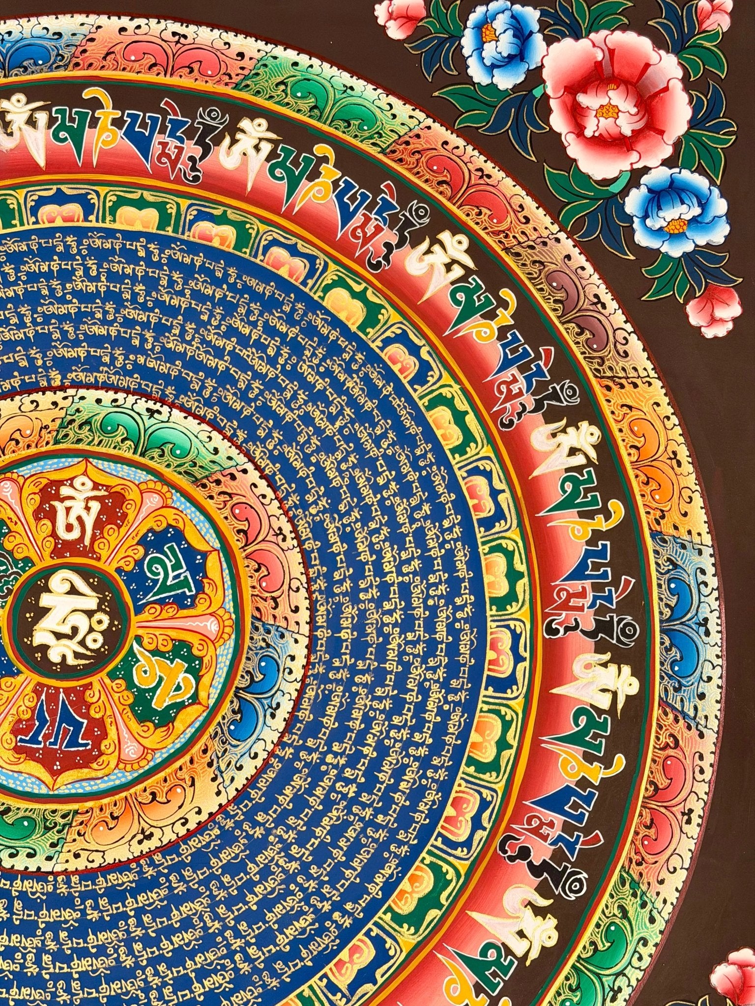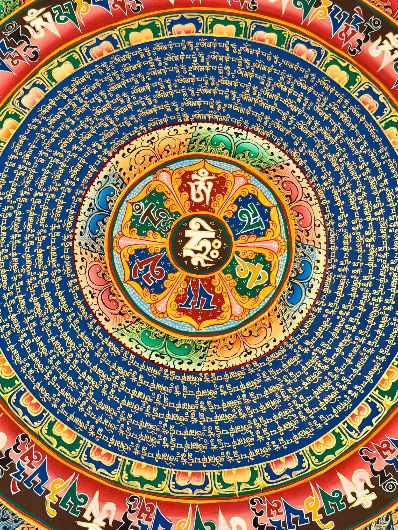 The Om Mantra Mandala Thangka is not just a decorative piece; it is a profound spiritual artifact, radiating peace, harmony, and enlightenment. Whether hung in your home, office, or meditation space, this masterpiece invites blessings, balance, and sacred energy into your life.