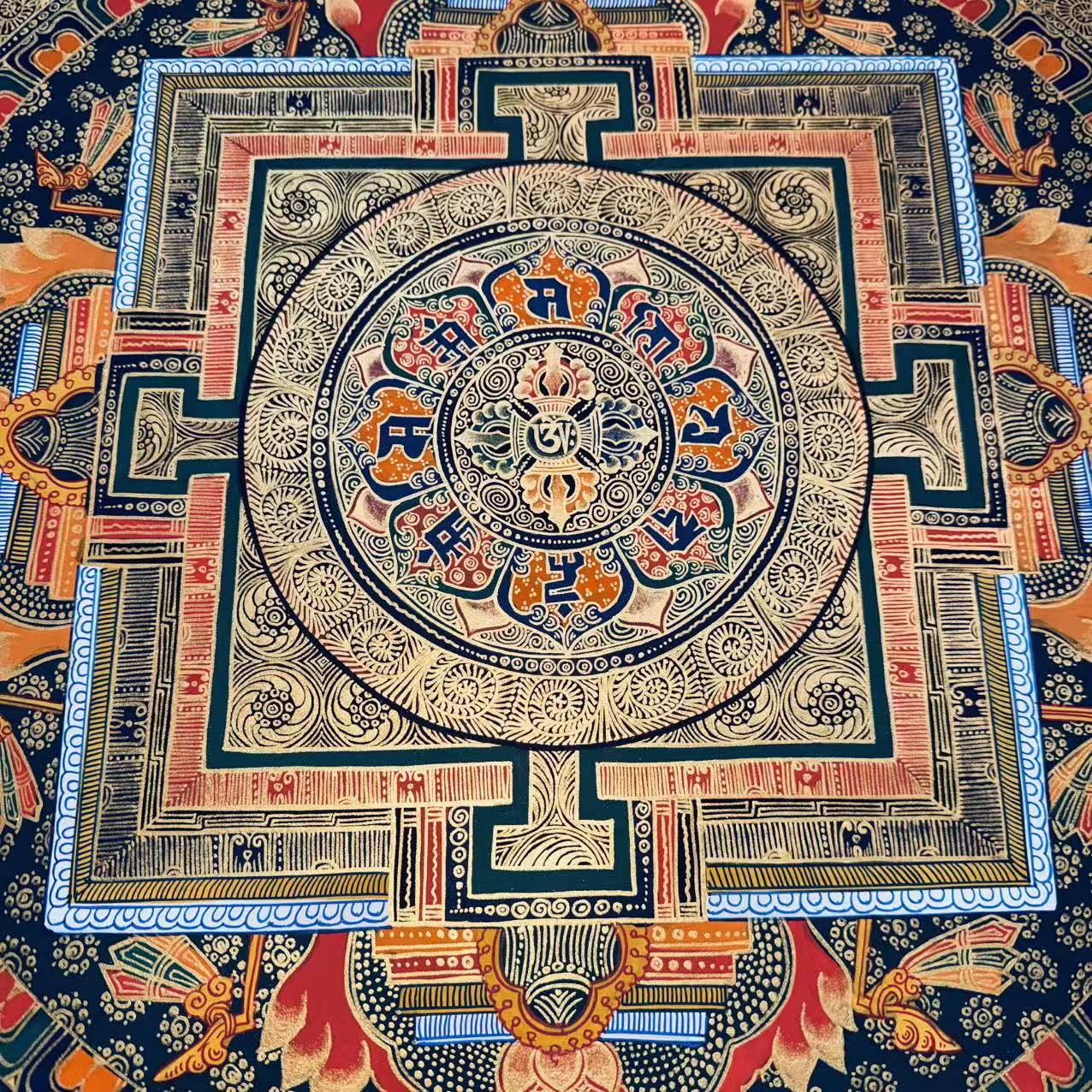 The Om Mantra Mandala Thangka is not just a decorative piece; it is a profound spiritual artifact, radiating peace, harmony, and enlightenment. Whether hung in your home, office, or meditation space, this masterpiece invites blessings, balance, and sacred energy into your life.