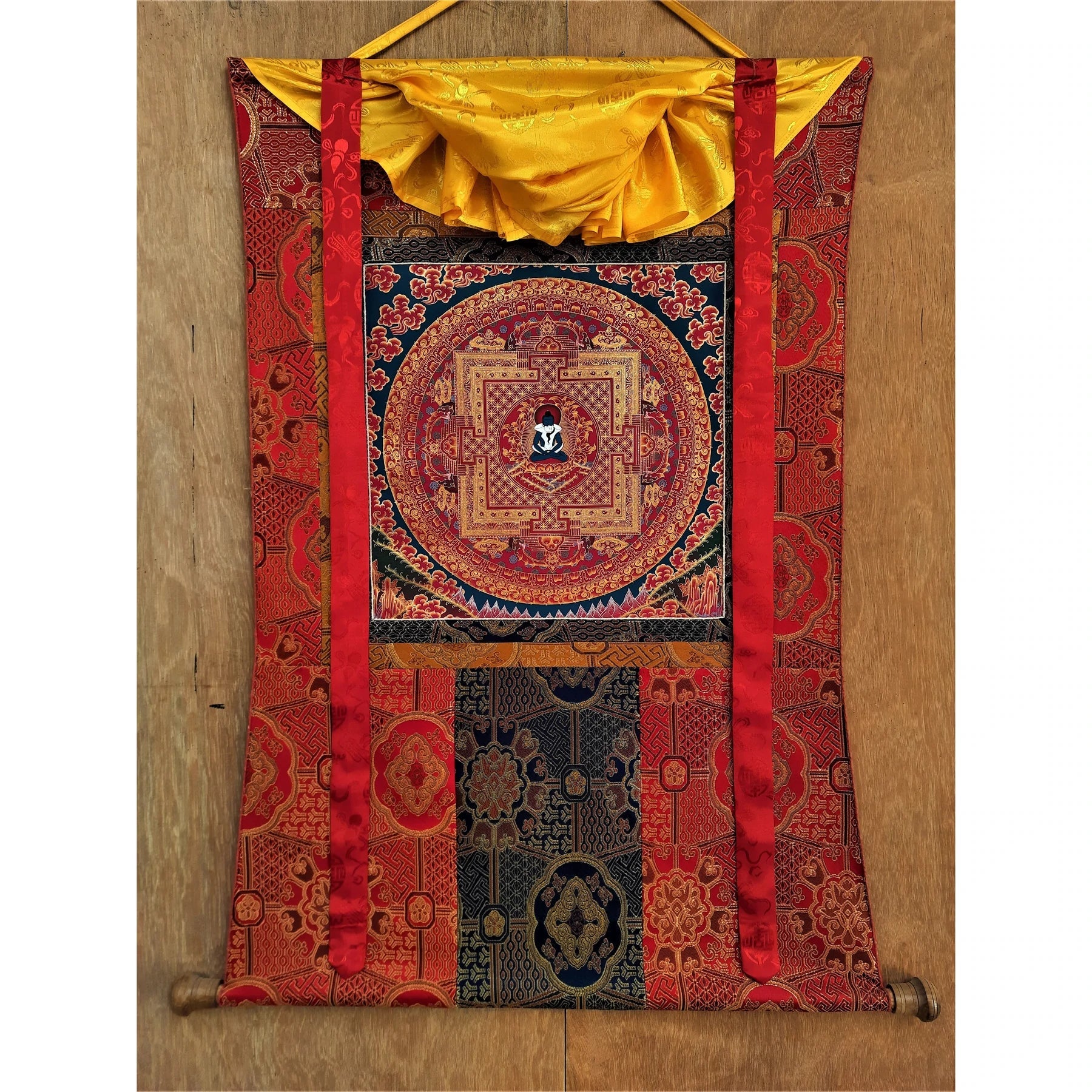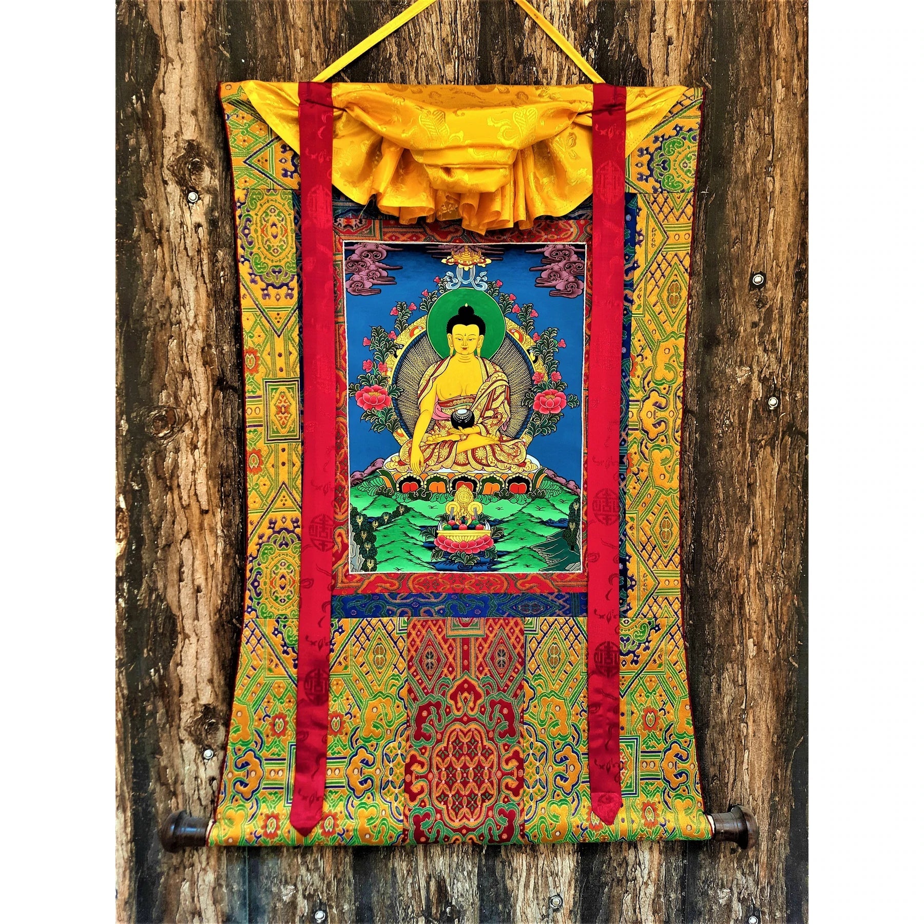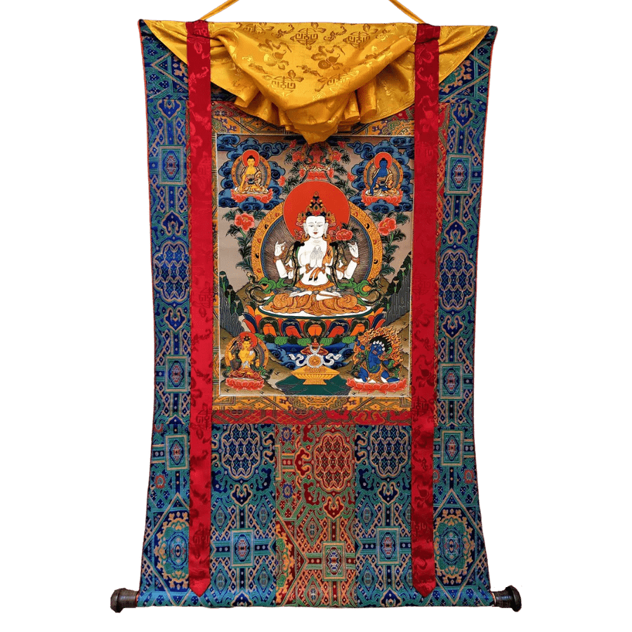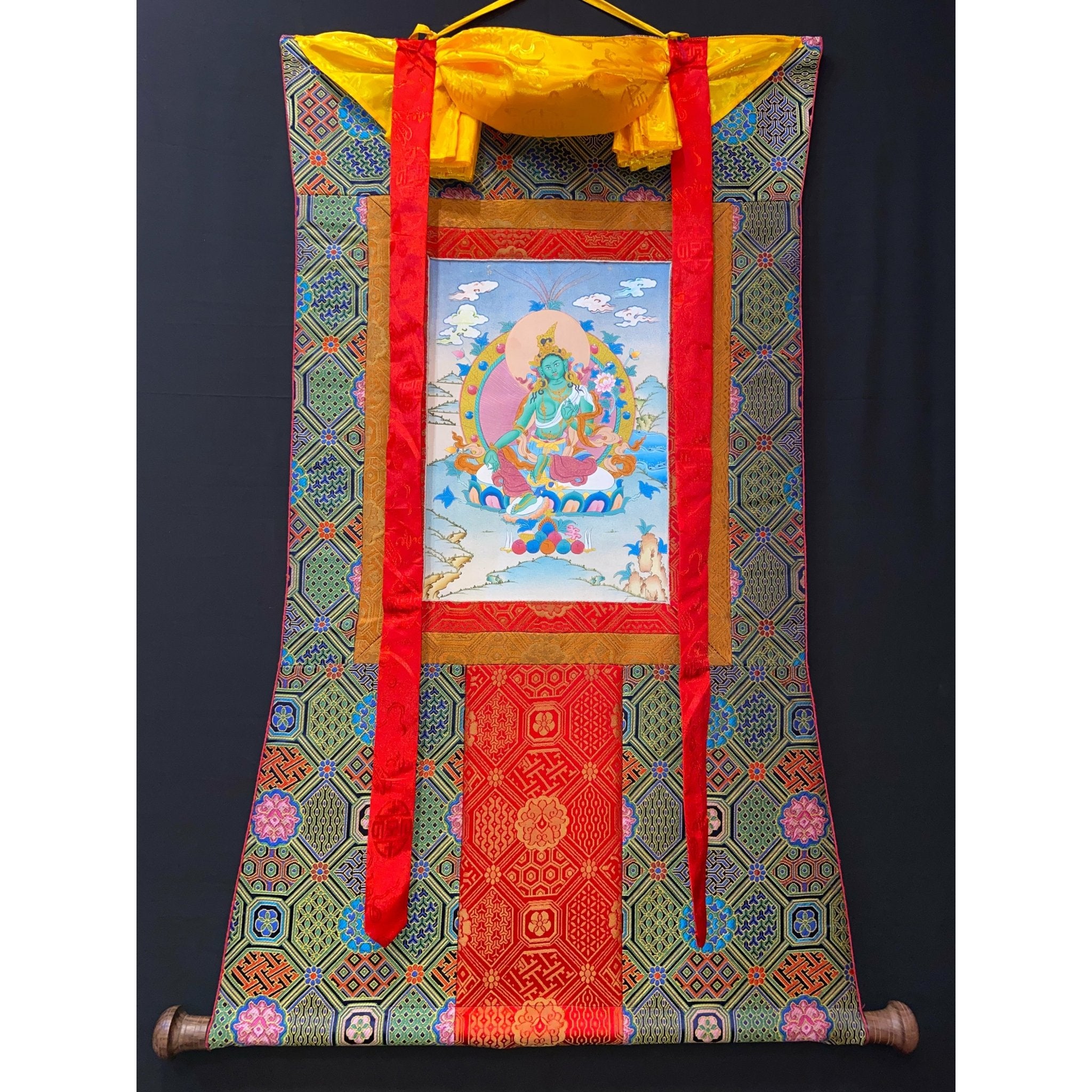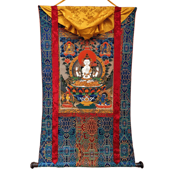 Adding a Thangka brocade enhances the overall beauty and presence of the painting, making it ideal for your meditation space, altar, or home décor. These sacred pieces of art embody the energy of the tradition, the deities, and the artists who create them.