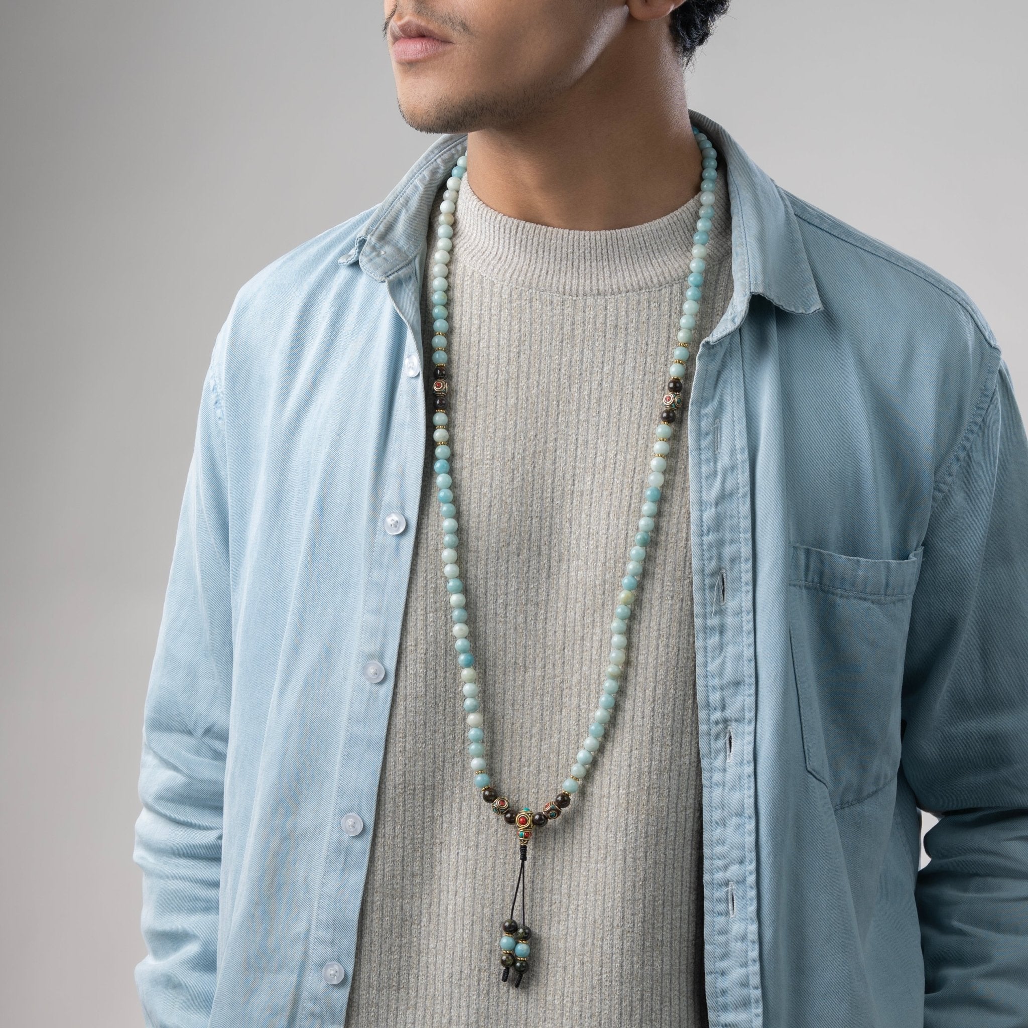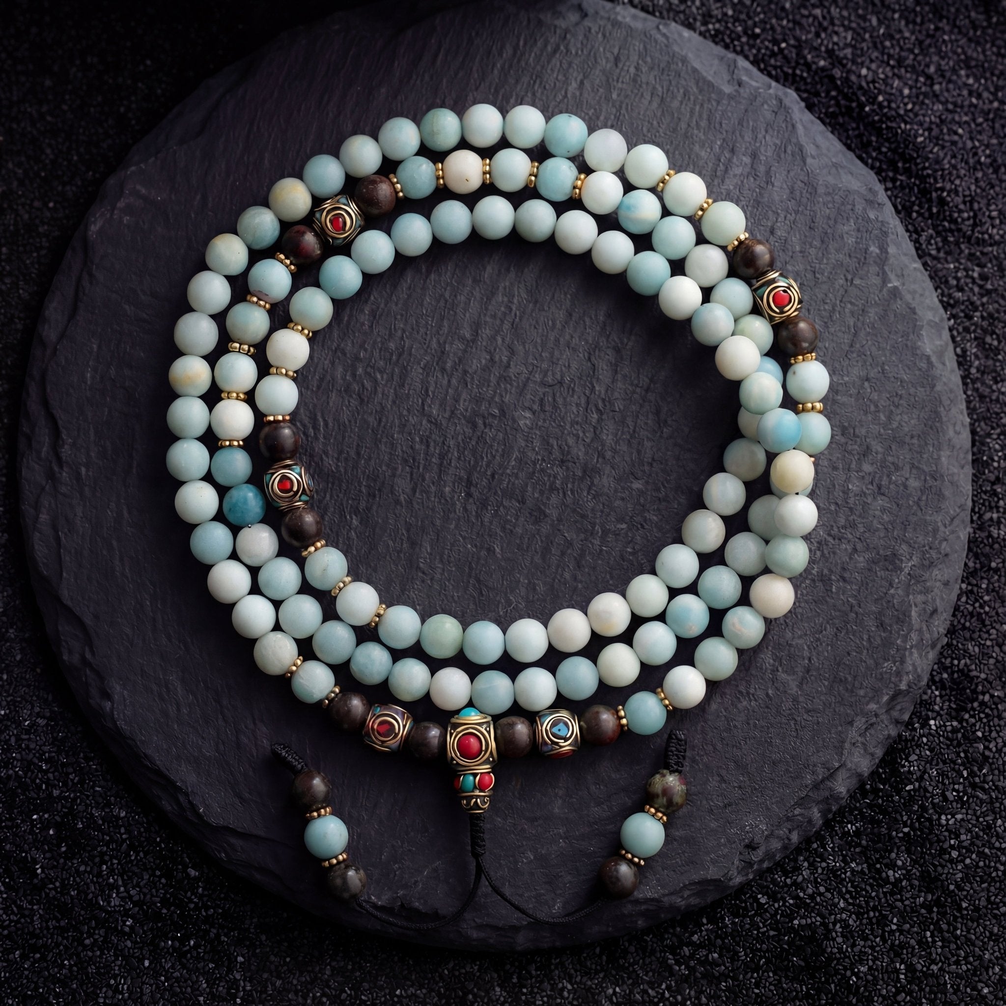 It is an exquisite piece of mala beads! I’m very impressed with the stones and the beauty of the colors. It feels cool when you first put in on. It means the stones are genuine. I adore it!