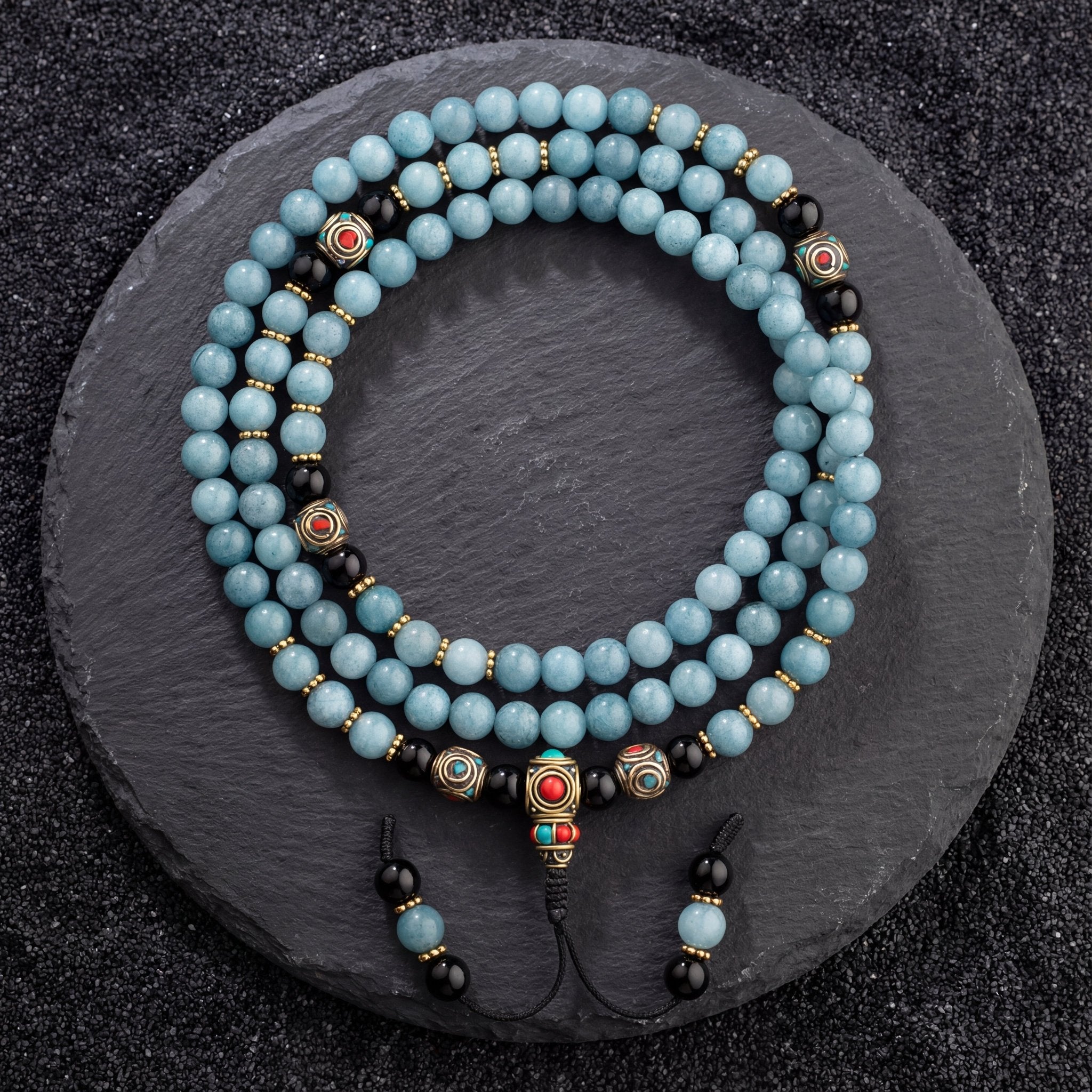 The Aquamarine Mala is known for its calming, relaxing, and cleansing energies, which are associated with the water element. It has long been considered a talisman of good luck and protection. As a throat chakra stone, Aquamarine enhances communication and promotes happiness, making it a powerful tool for emotional clarity.