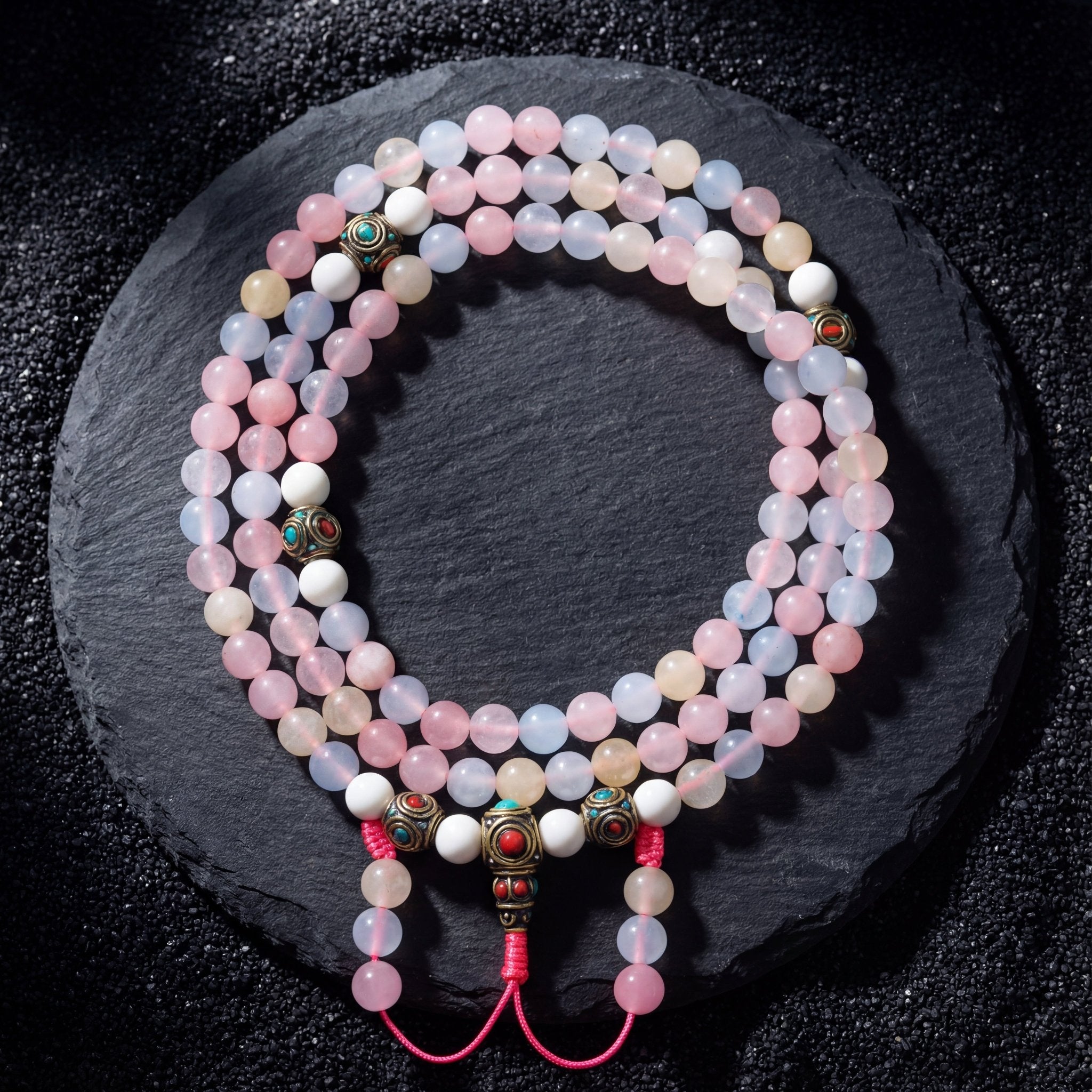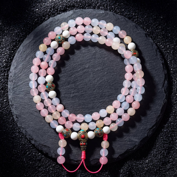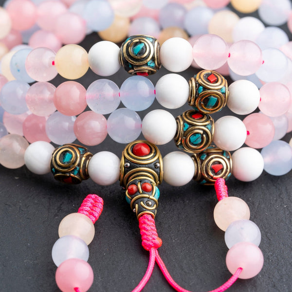 This mala is so beautiful, cheerful, and loving. The light colors make me smile and feel more joyful! Wonderfully made, thoughtful packaging, a gift of kindness :)