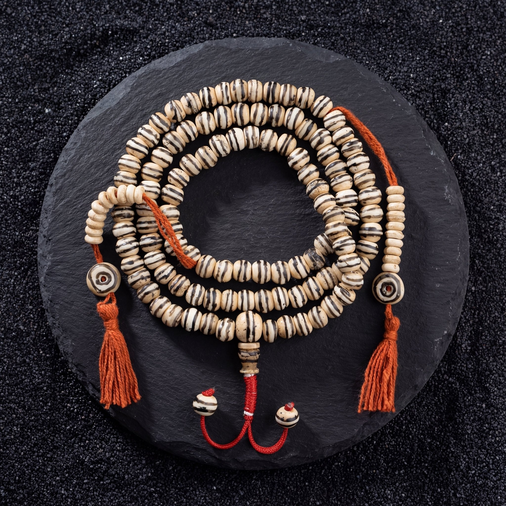 <strong>Sustainable Craftsmanship:</strong> Each mala is made from eco-friendly, naturally dyed yak bone, ensuring minimal waste.<br>
