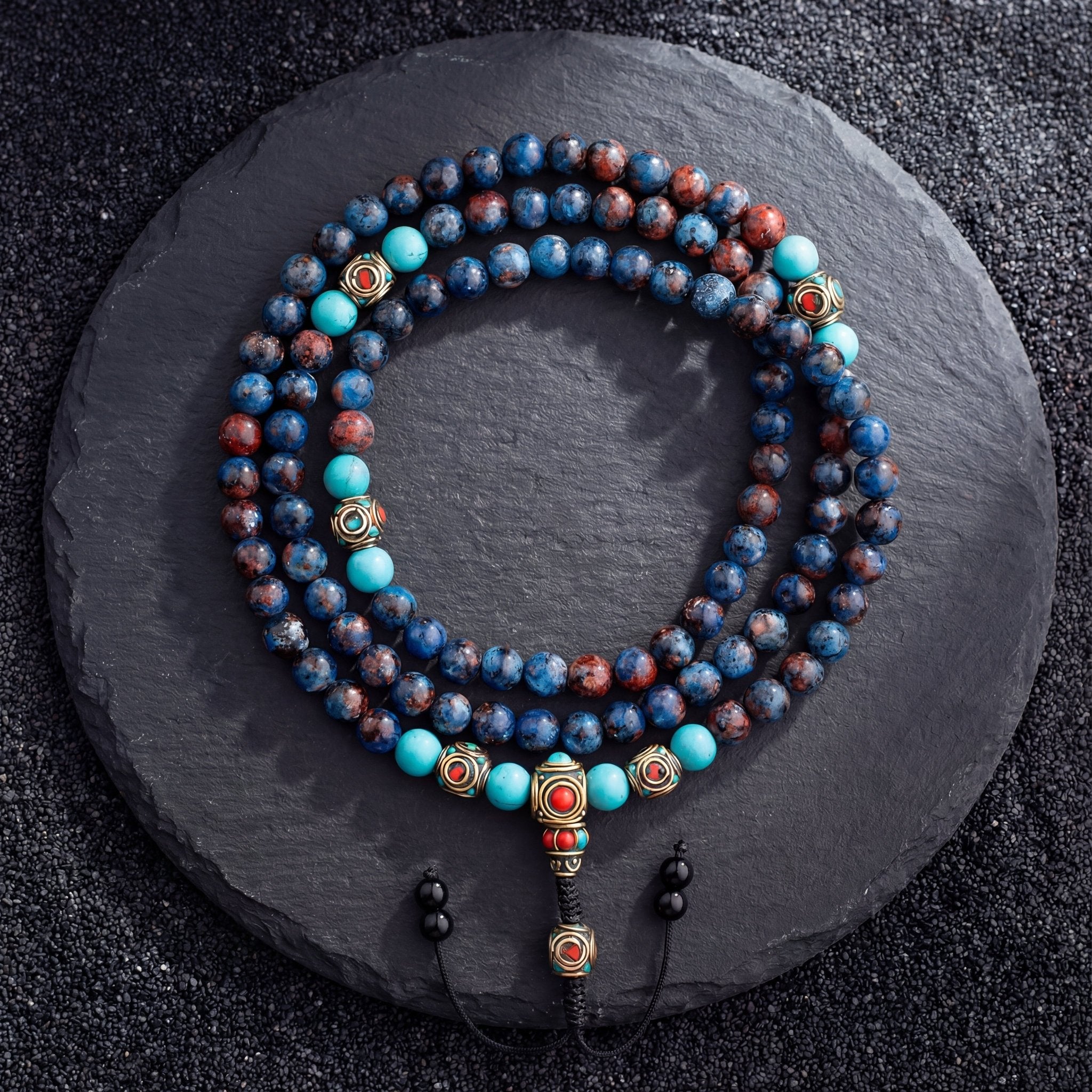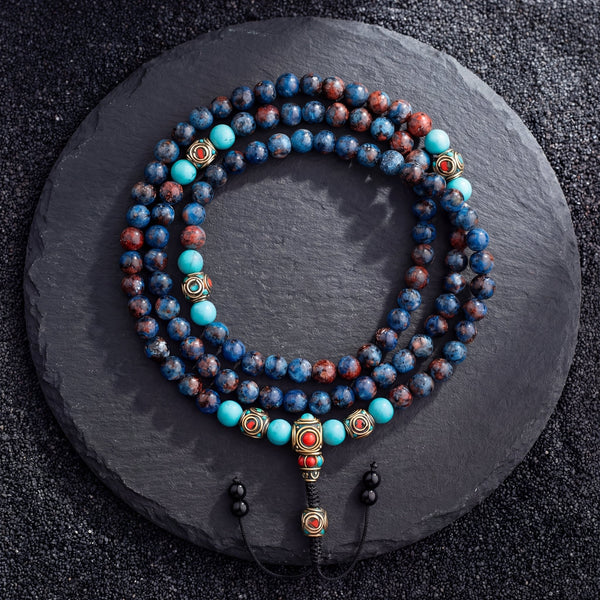 It is an exquisite piece of mala beads! I’m very impressed with the stones and the beauty of the colors. It feels cool when you first put in on. It means the stones are genuine. I adore it!