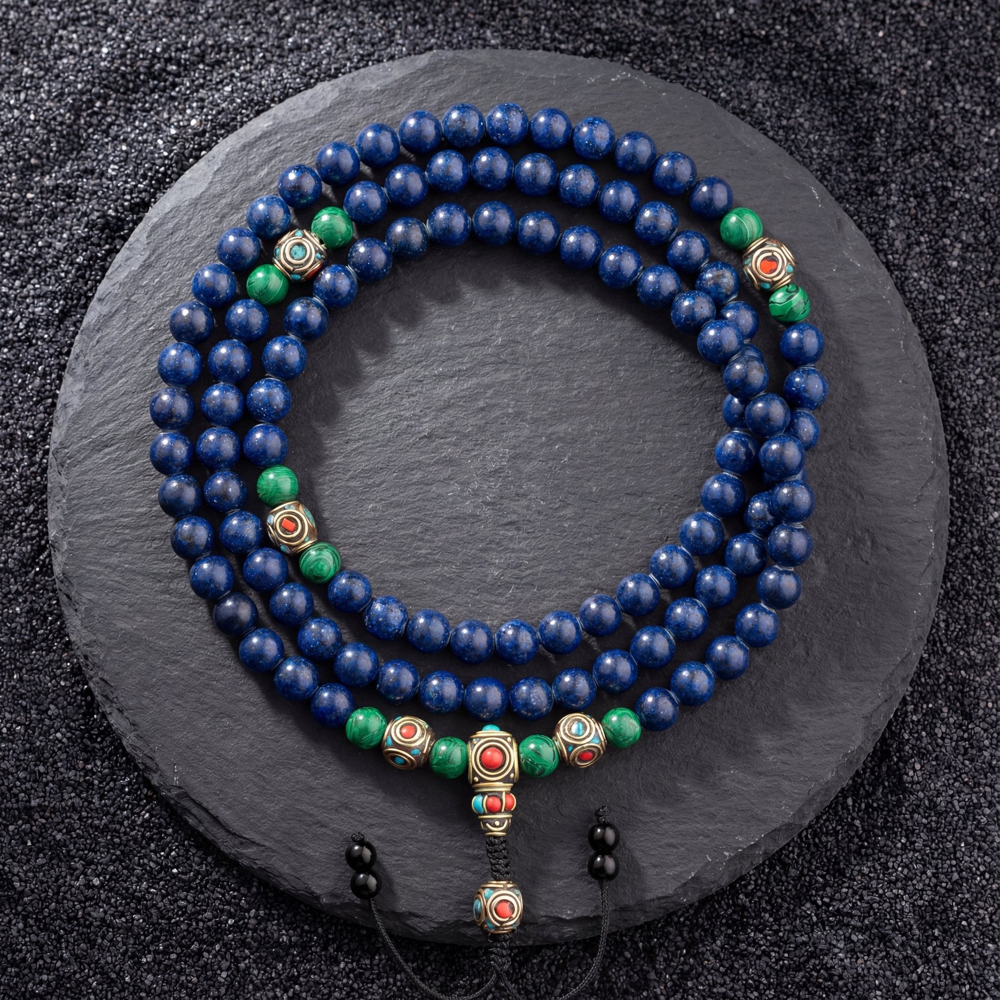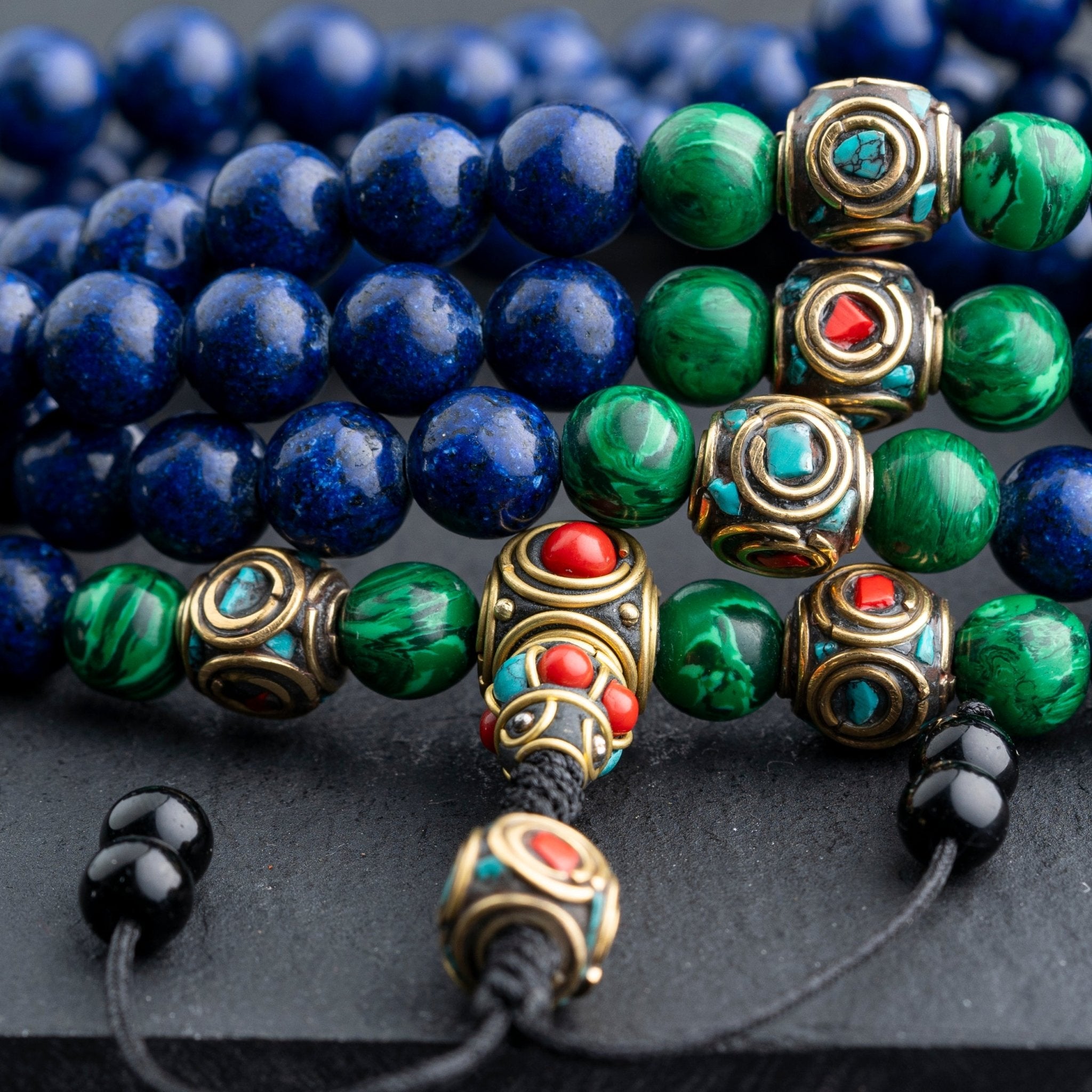 It is an exquisite piece of mala beads! I’m very impressed with the stones and the beauty of the colors. It feels cool when you first put in on. It means the stones are genuine. I adore it!