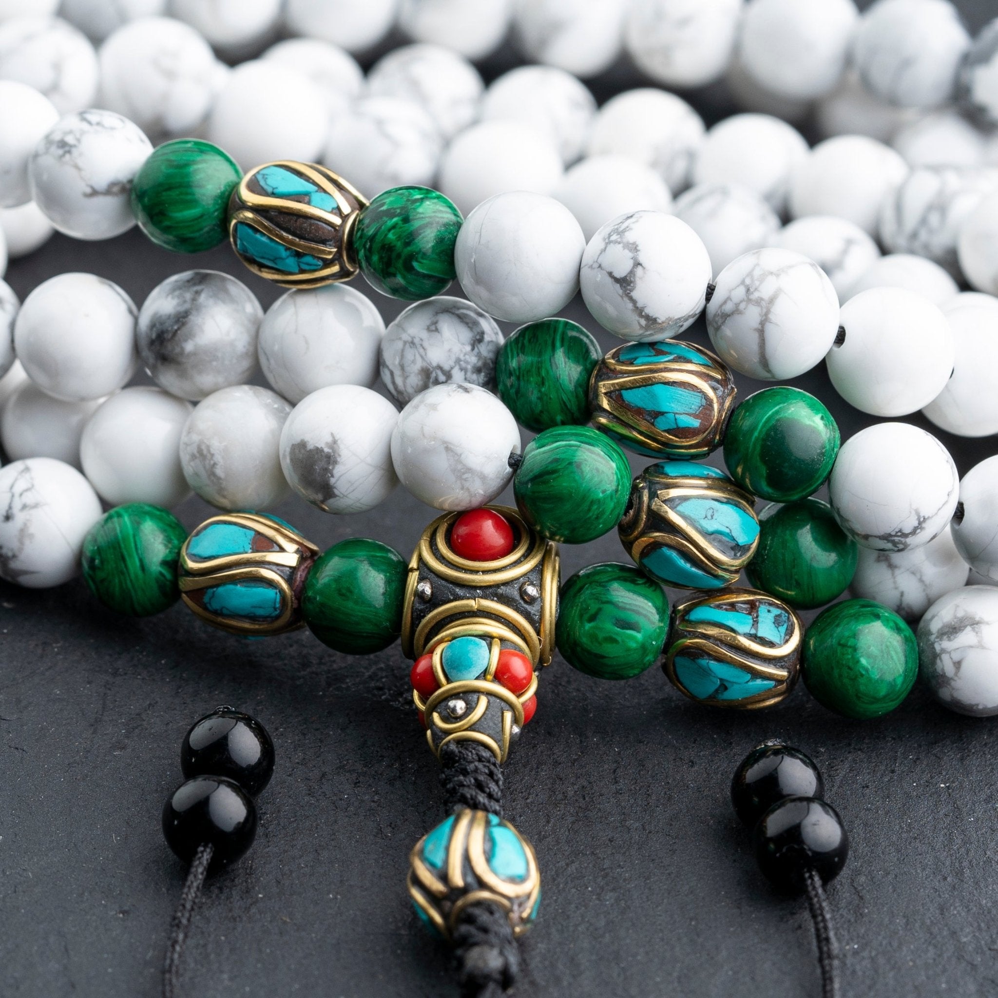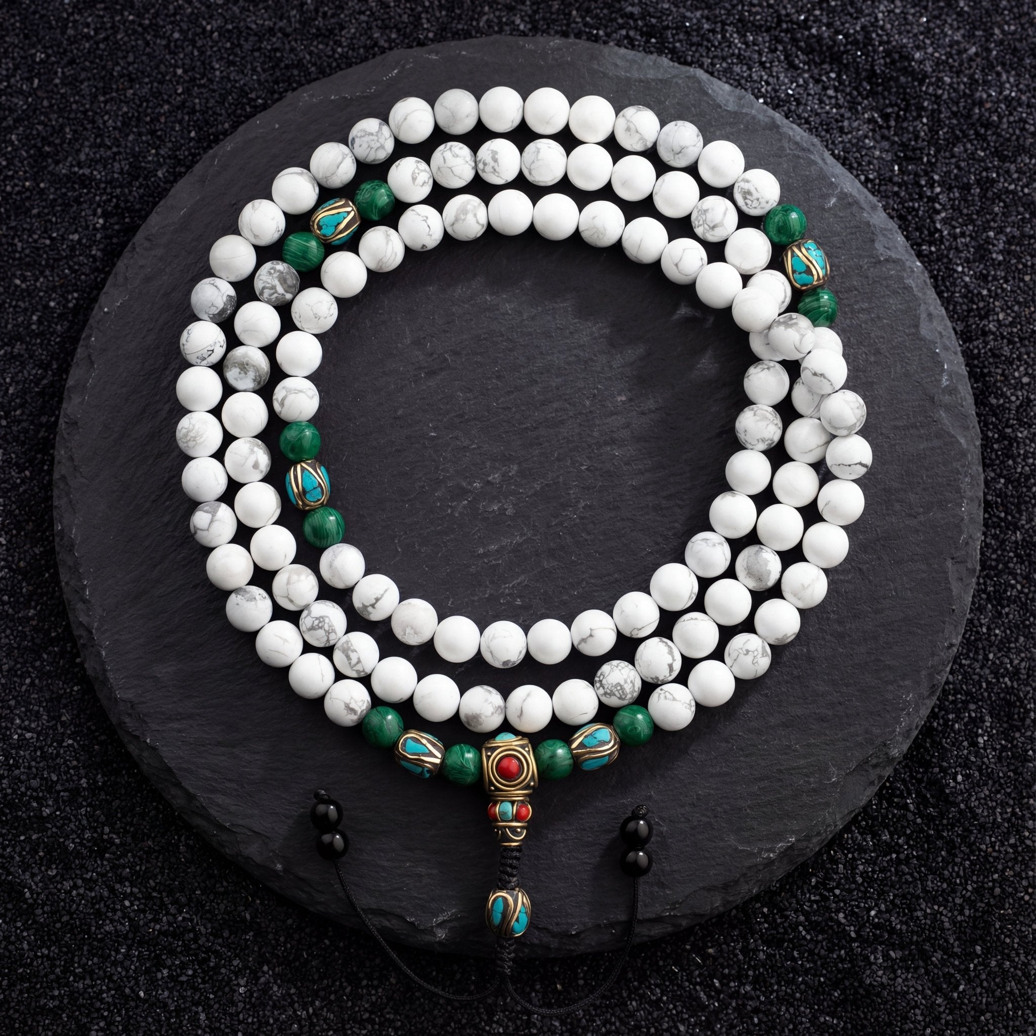 Wear the Howlite Mala for a soothing influence throughout the day or pair it with other calming stones for deeper meditation practices. Its tranquil energy makes it perfect for those seeking emotional balance and clarity.