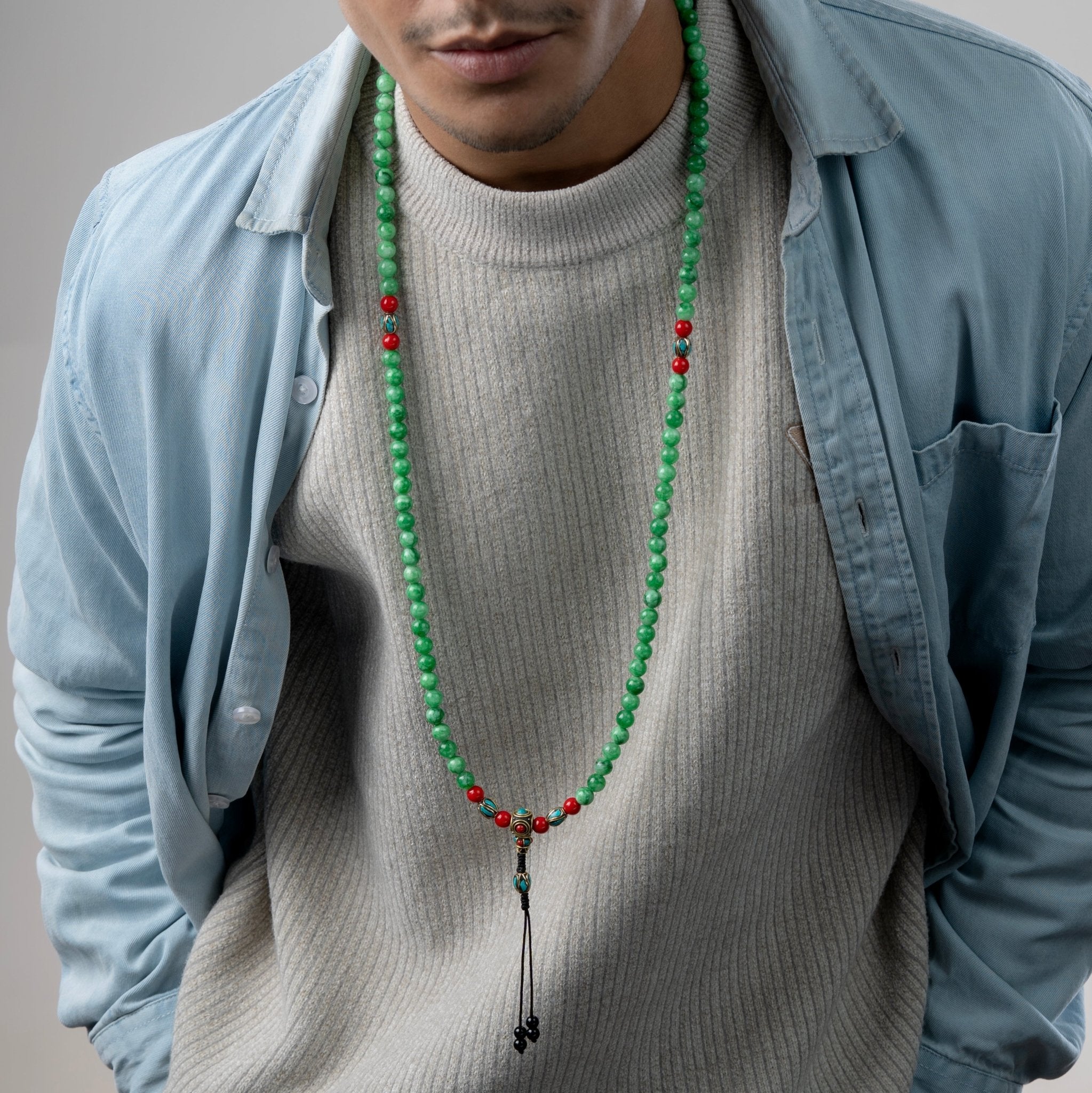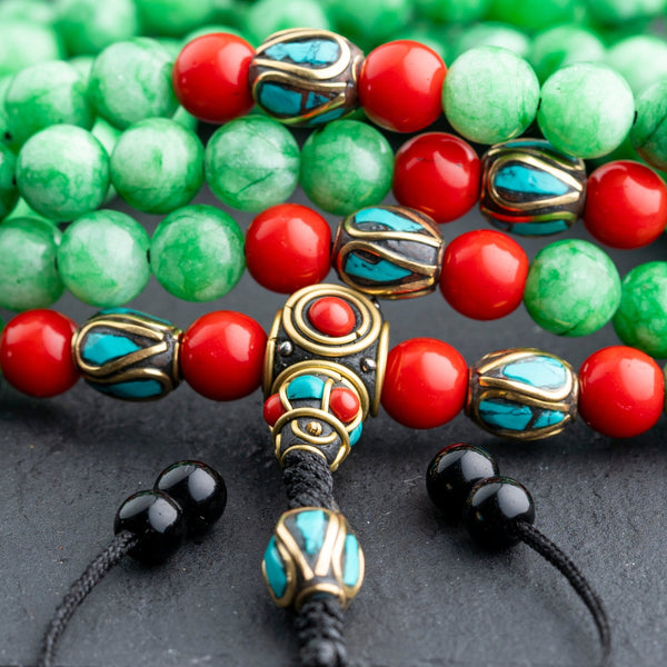 Wear the Green Jade Mala for its calming energy, or pair it with other stones to enhance vitality and spiritual balance.