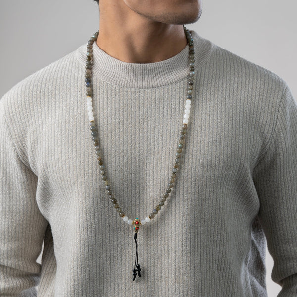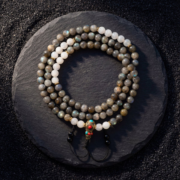 Labradorite & Moonstone Mala – Intuition & Transformation