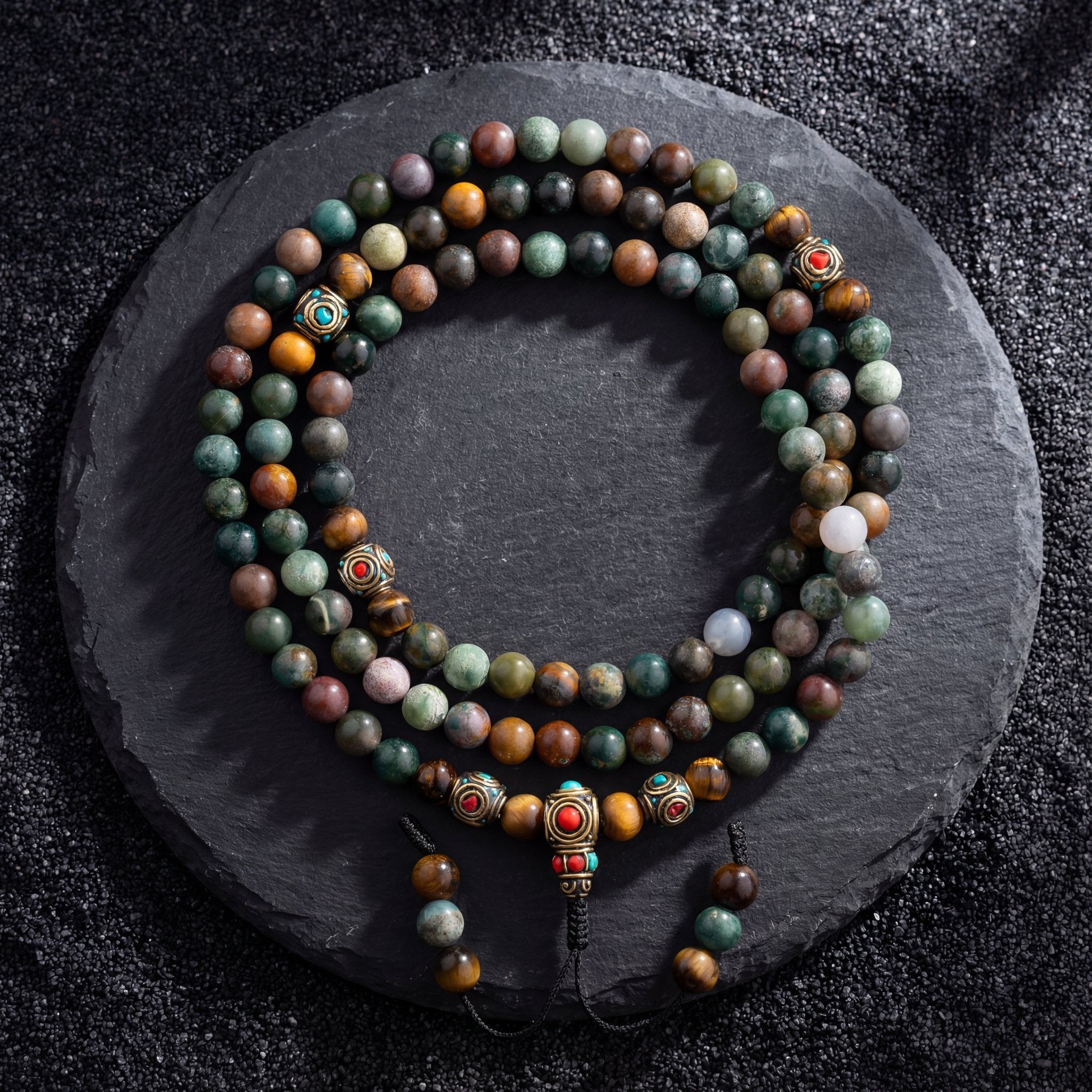 Each bead is unique, with its own colorful stone pattern and natural inclusions, making every mala a one-of-a-kind piece. This stone’s earthy energy connects you to nature, promoting calm, stability, and revitalization.