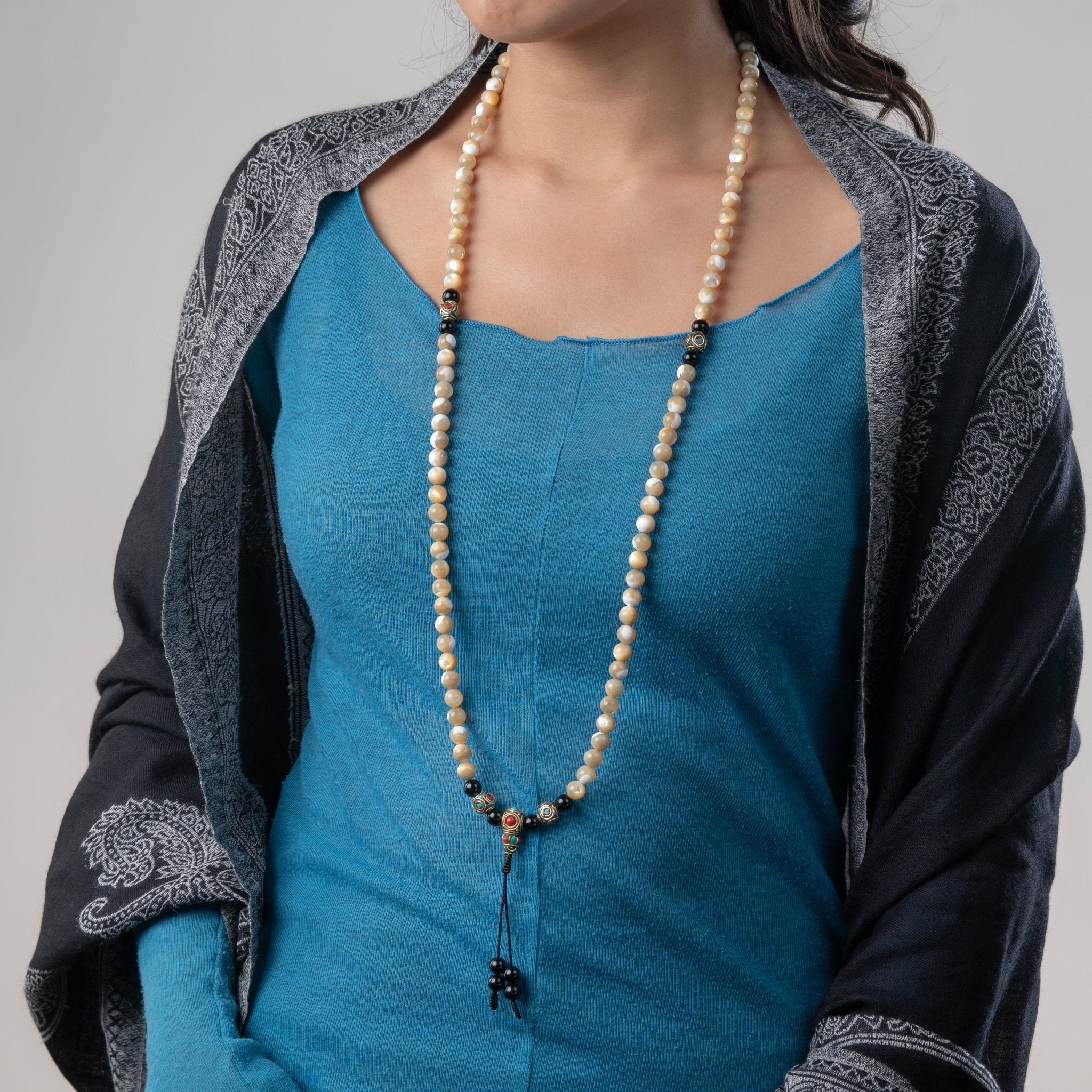 The beautiful sheen of the Mother of Pearl beads makes each mala a unique, elegant accessory while supporting emotional harmony and inner peace.