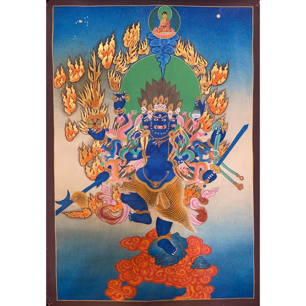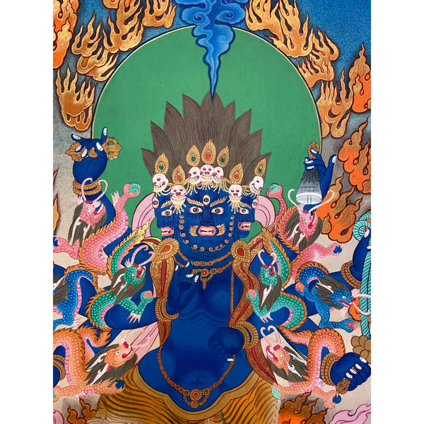 Bring the wisdom, compassion, and protective energy of Akash Bhairab into your life with this masterfully crafted Thangka painting.